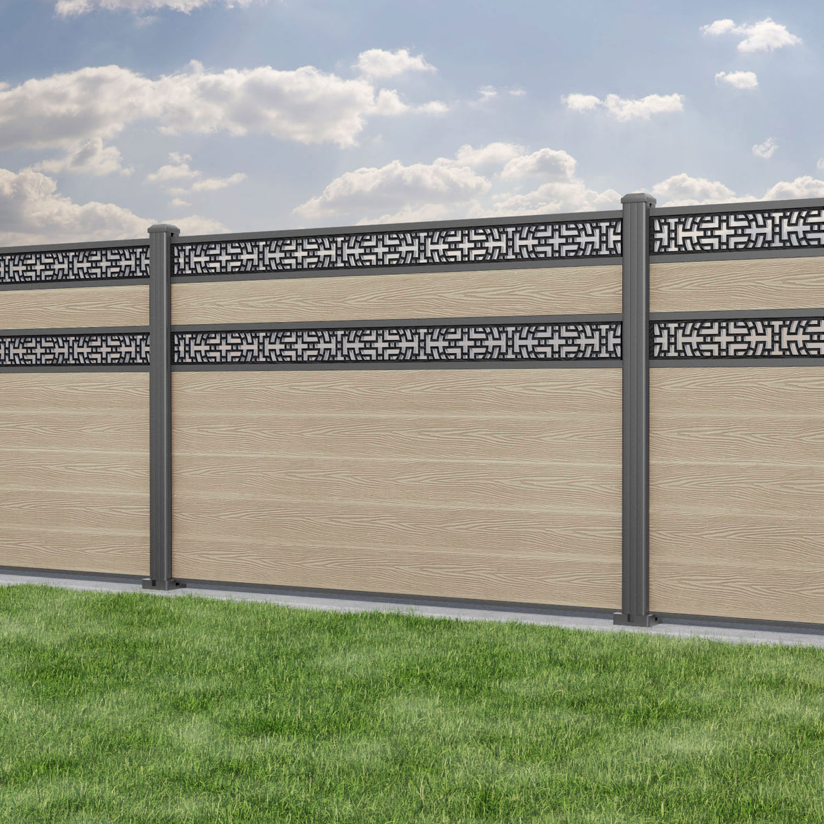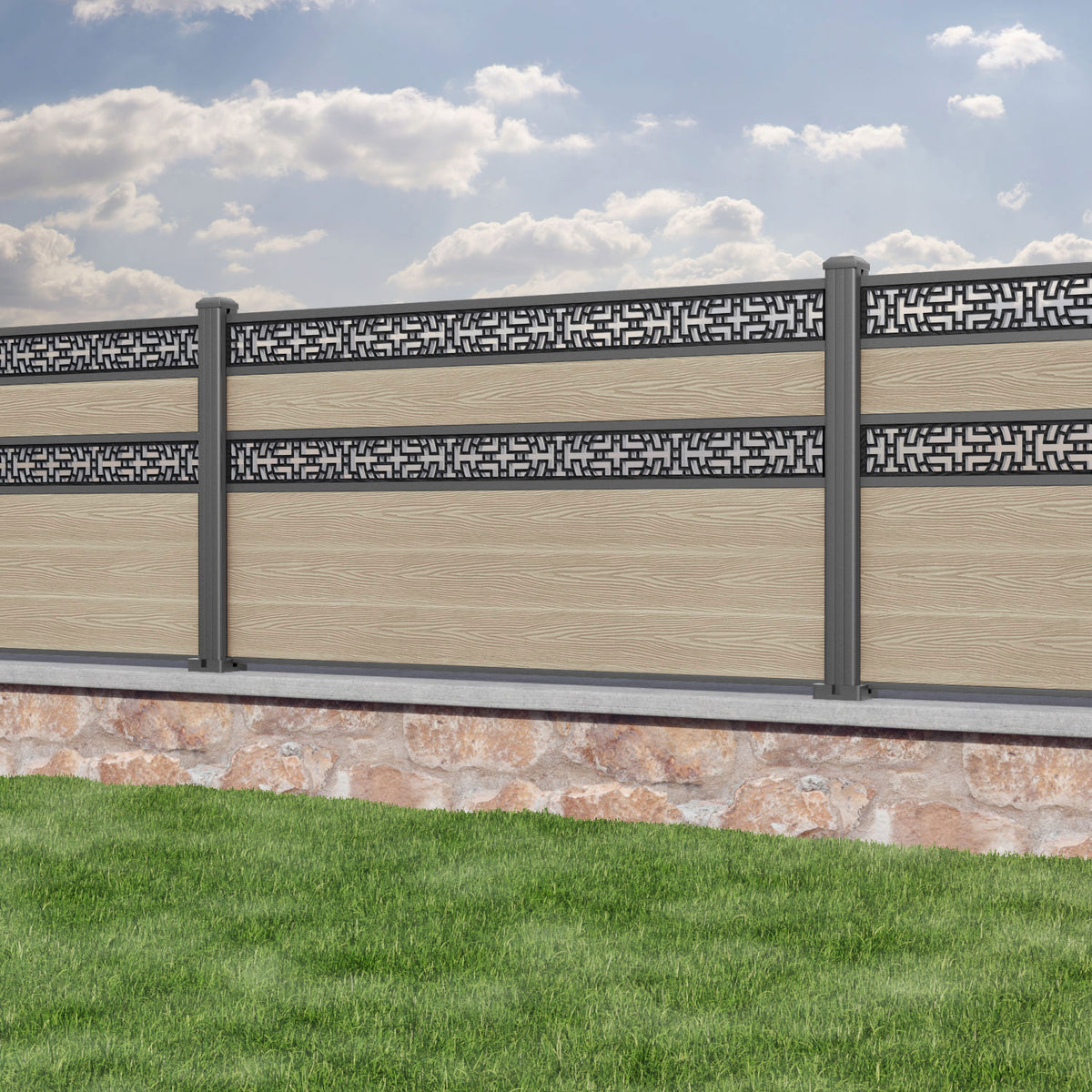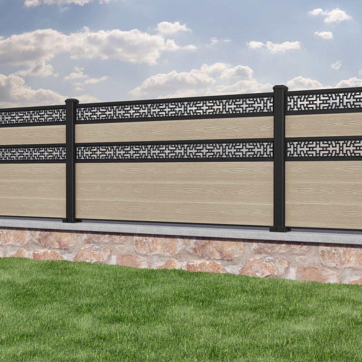 Reference: Classic Kumo Split Screen Fence Panel - Light Oak - with our aluminium posts