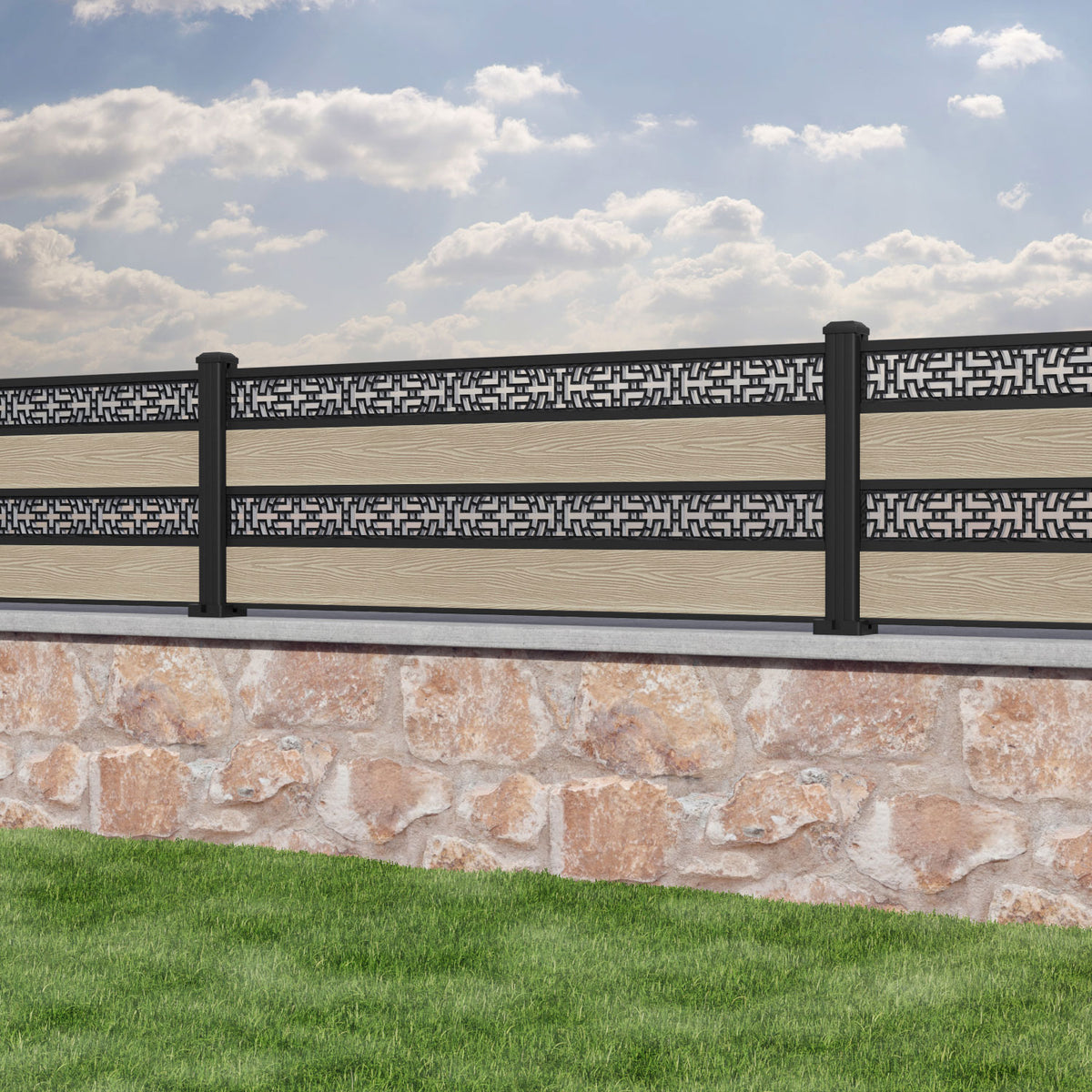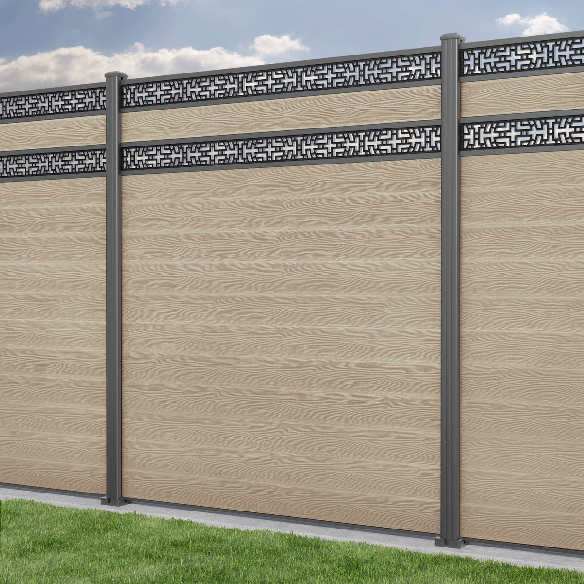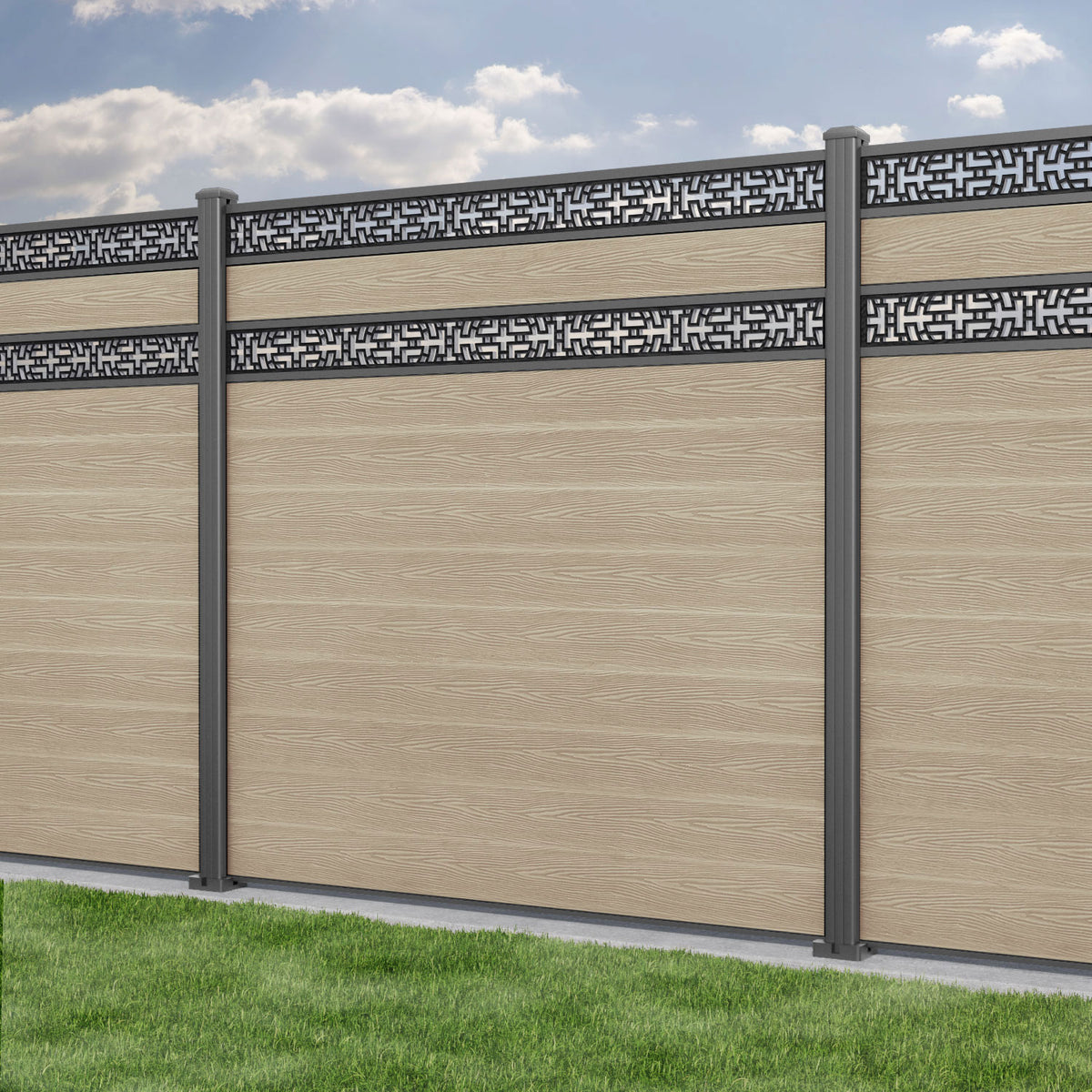 Reference: Classic Kumo Split Screen Fence Panel - Light Oak - with our aluminium posts