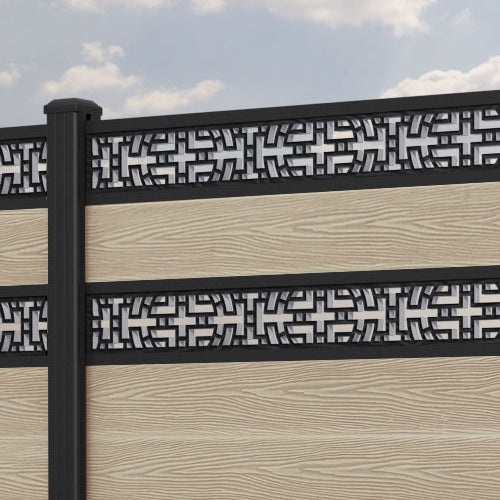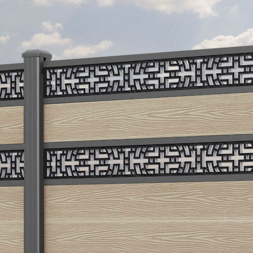 Classic Kumo Split Screen Fence Panel - Light Oak - with our aluminium posts