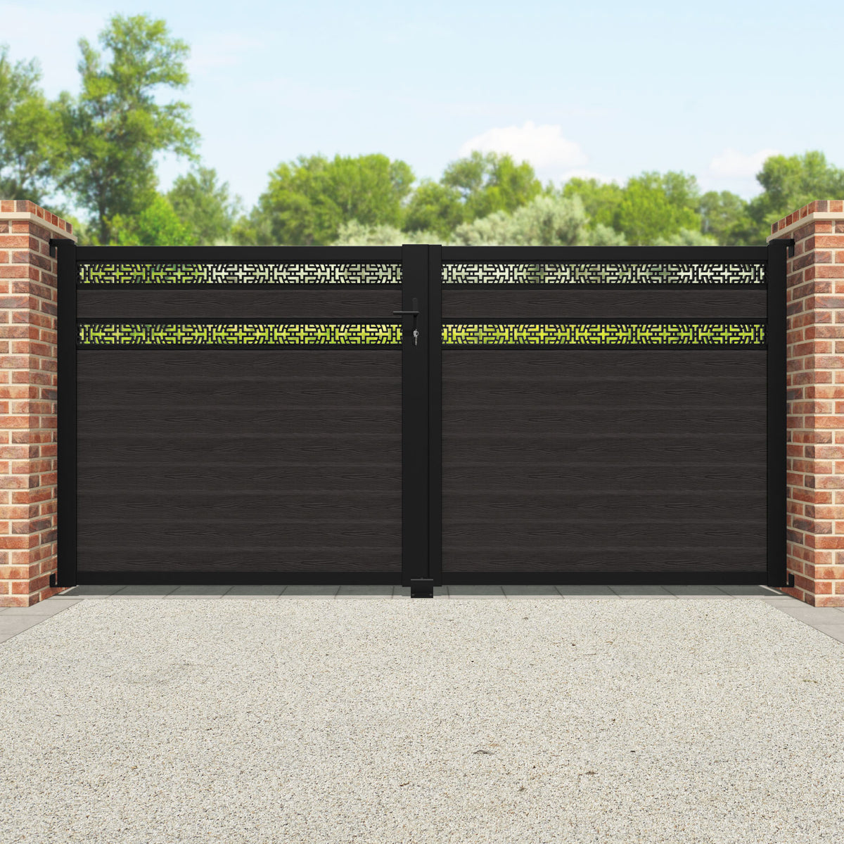 Pair your gate with our eco-friendly composite or aluminium slats for a seamless match with our fencing collections, ensuring a stylish and cohesive look.