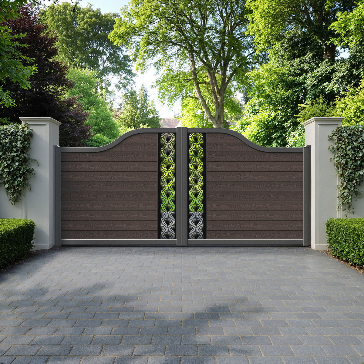 Classic Laurel Curved Top Driveway Gate Mid Brown - Middle Screen