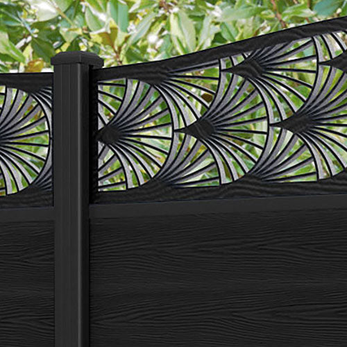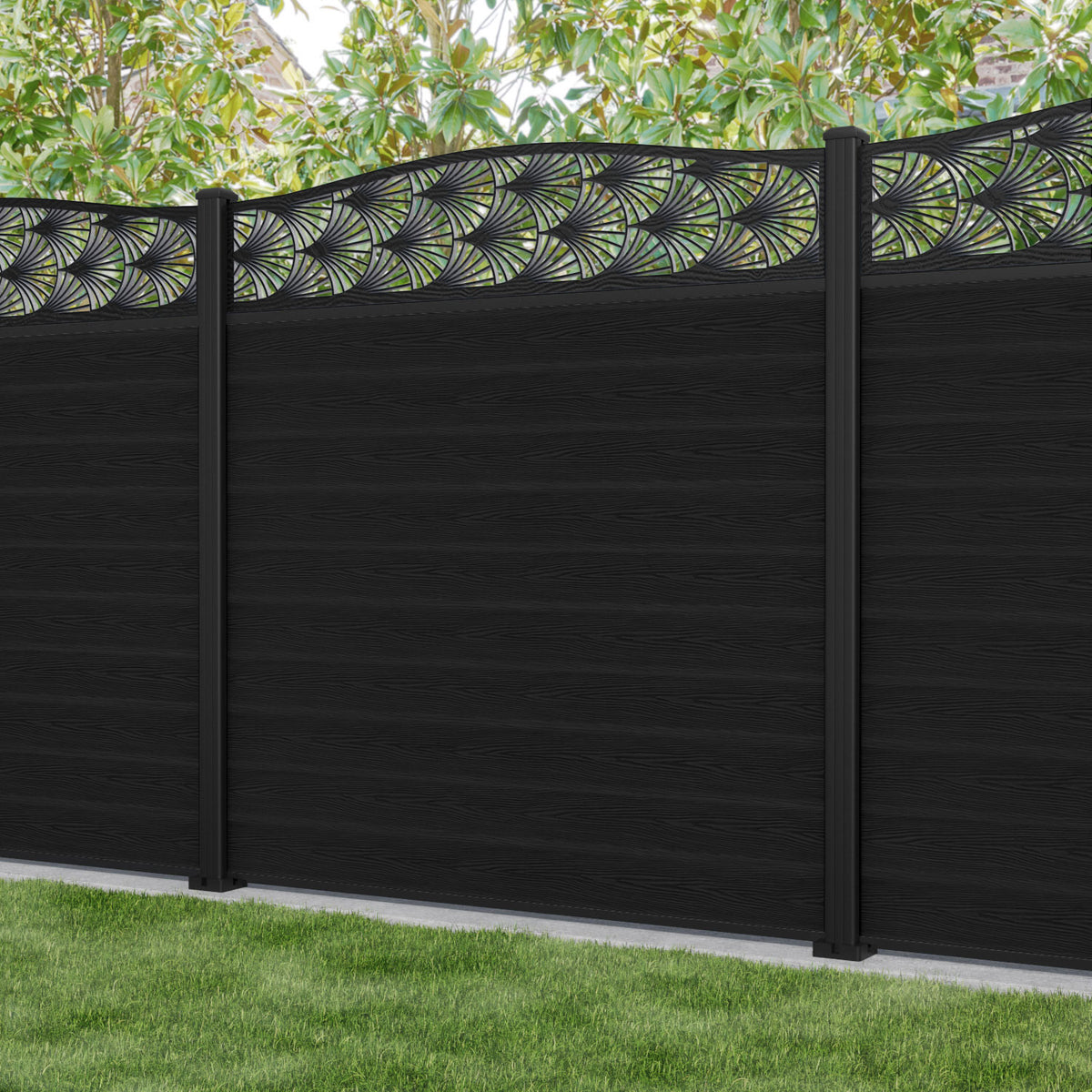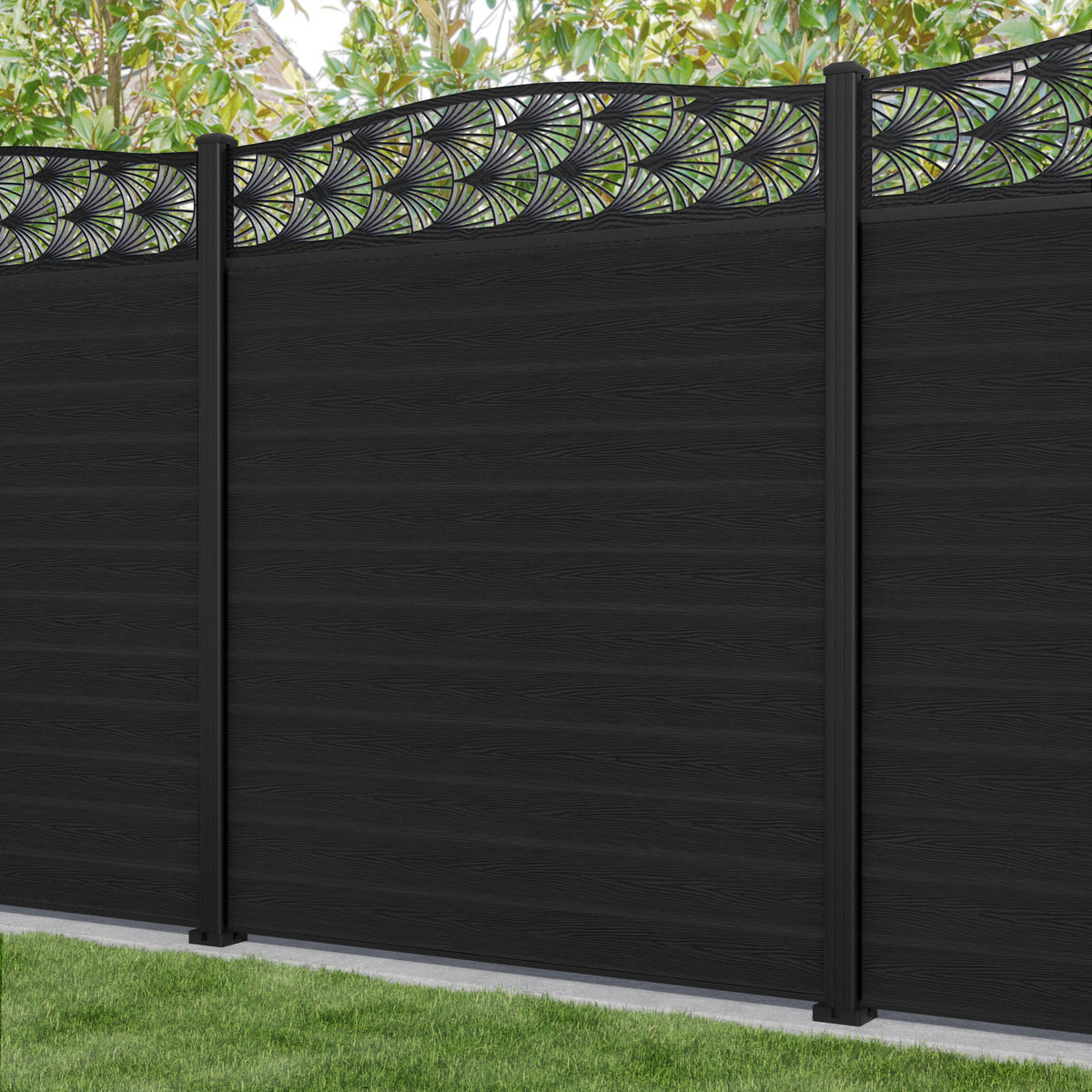 Classic Laurel Curved Top Fence Panel Black - with our aluminium posts