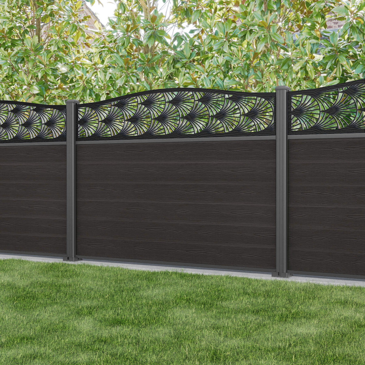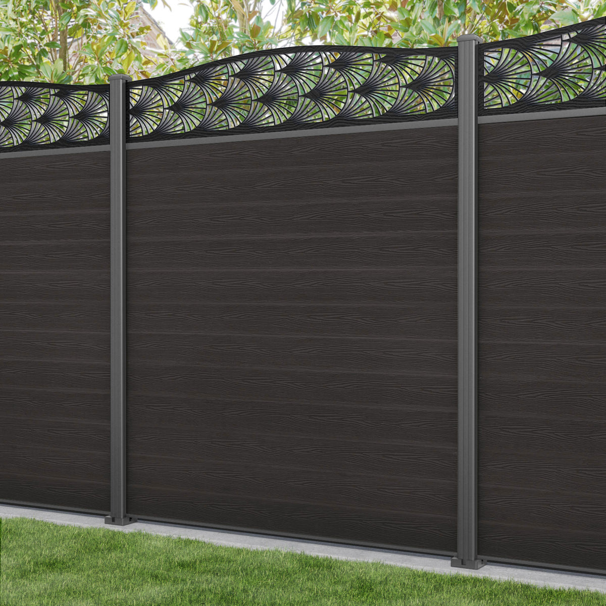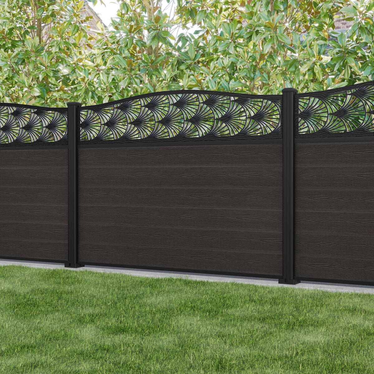 Classic Laurel Curved Top Fence Panel Dark Oak - with our aluminium posts