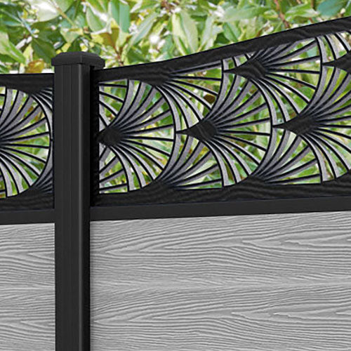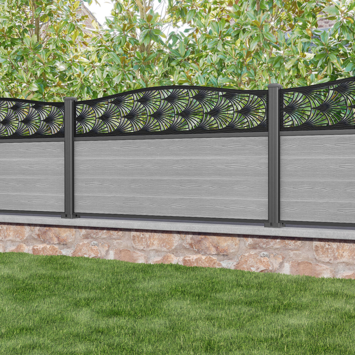 Classic Laurel Curved Top Fence Panel Light Grey - with our aluminium posts