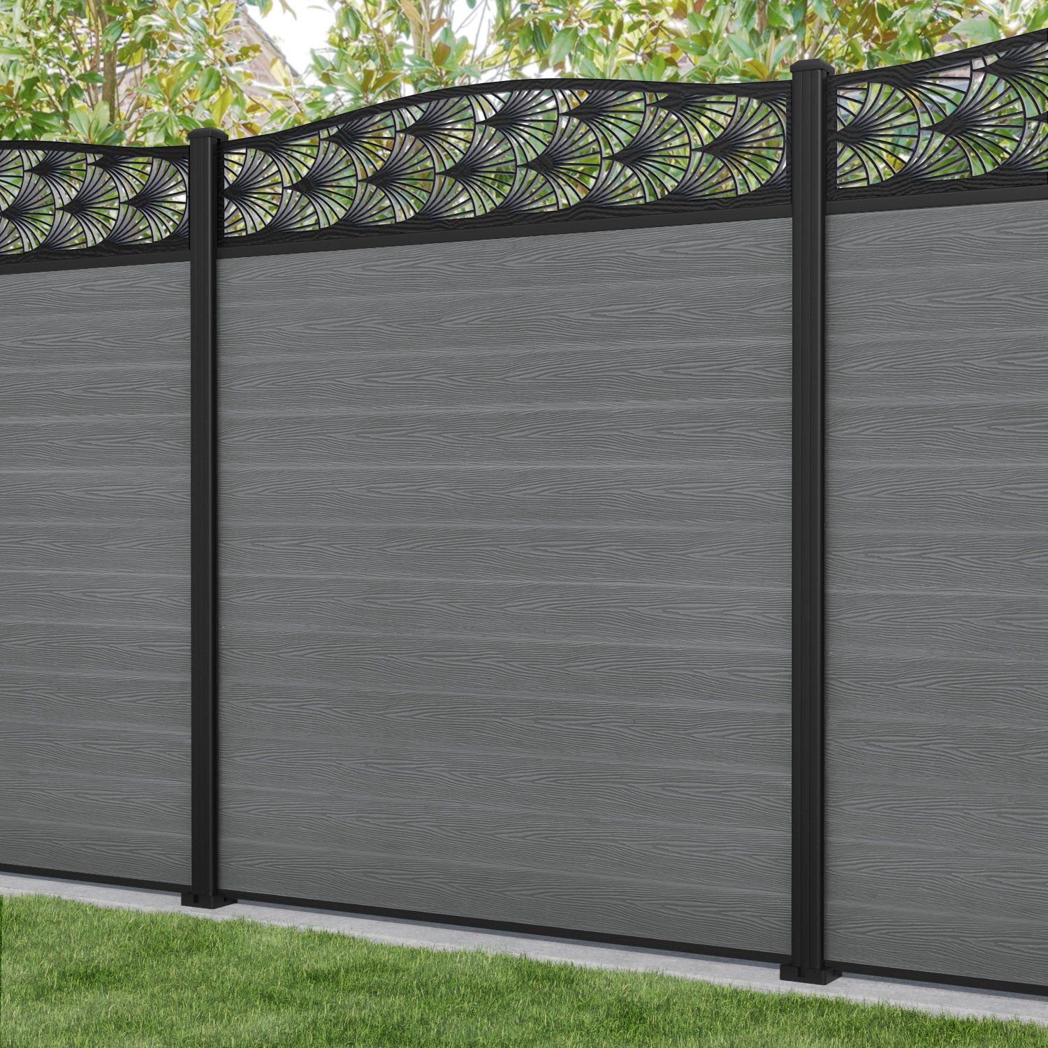 Classic Laurel Curved Top Fence Panel Mid Grey - with our aluminium posts