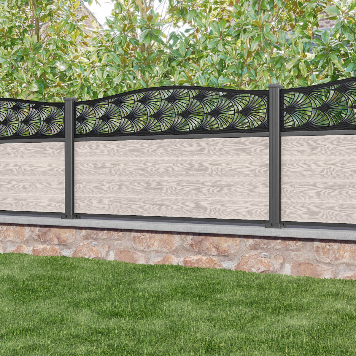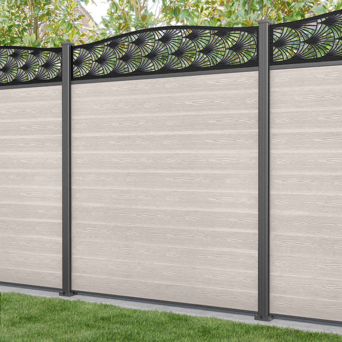 Classic Laurel Curved Top Fence Panel Mid Stone - with our aluminium posts
