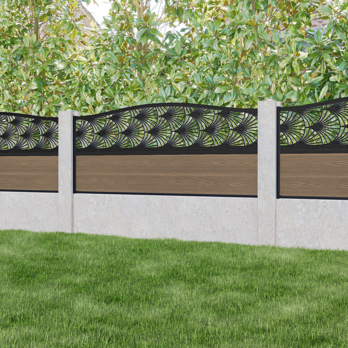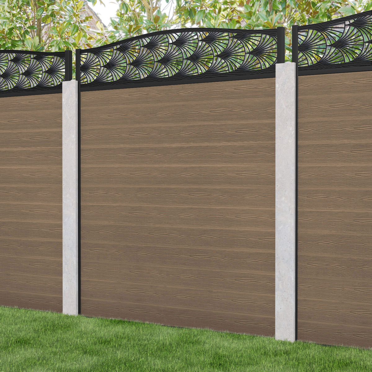 Classic Laurel Curved Top Fence Panel Teak - for existing concrete posts