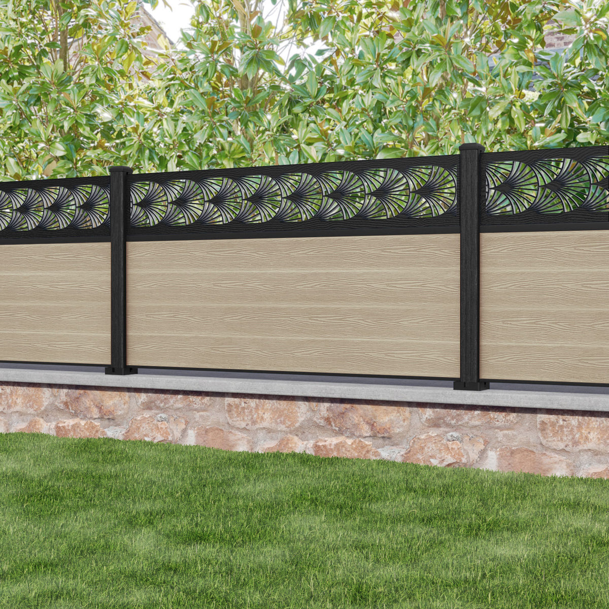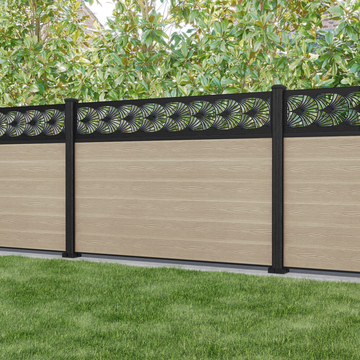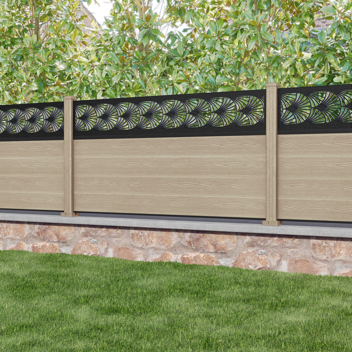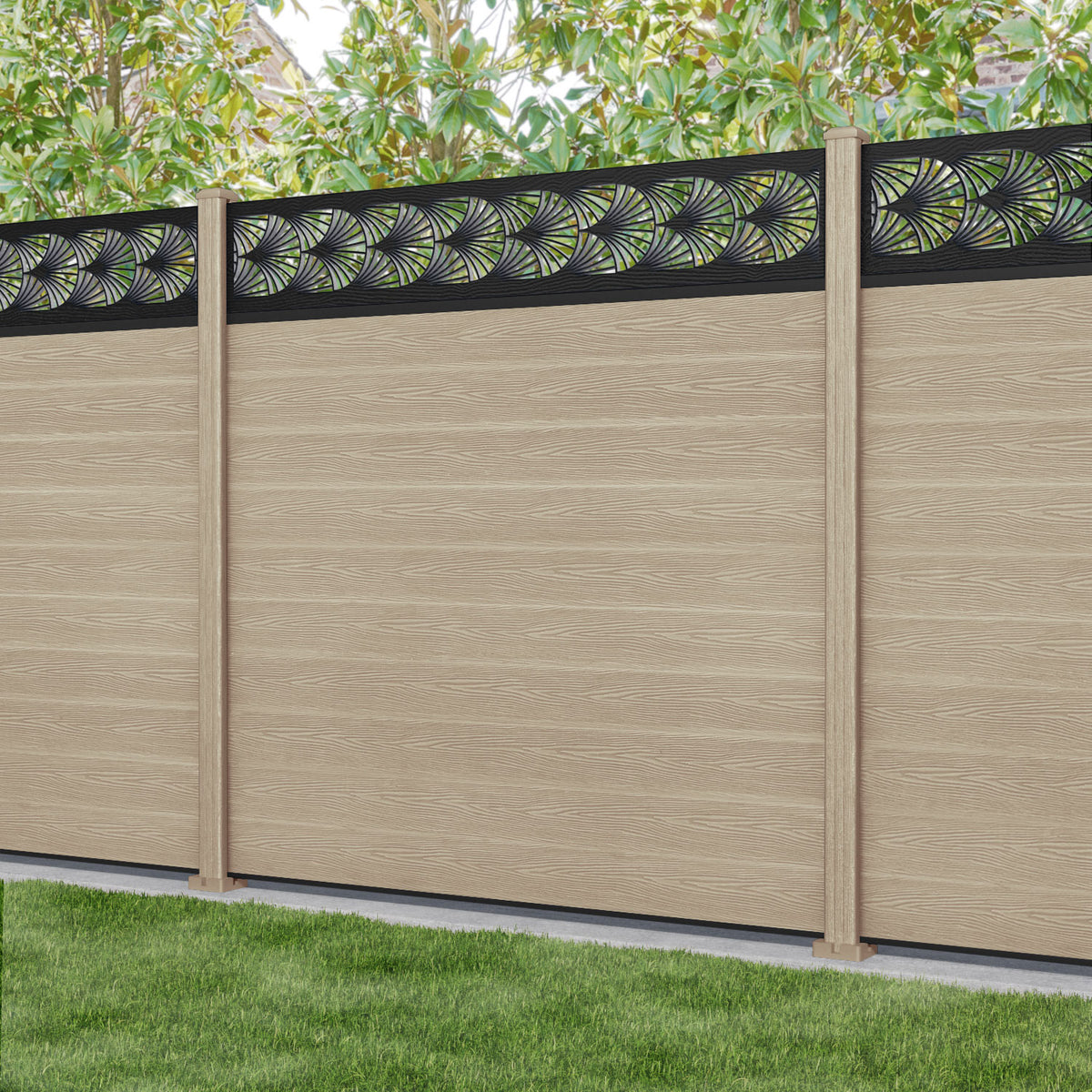 Classic Laurel Fence Panel Light Oak - with our composite posts