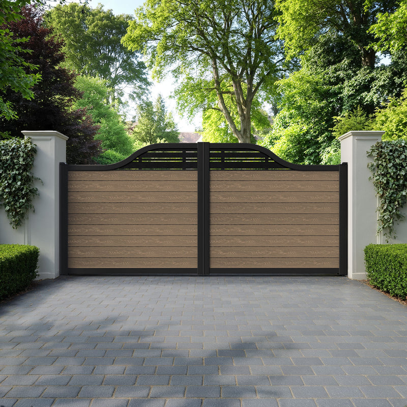 Classic Linea Curved Top Driveway Gate Teak - Top Screen