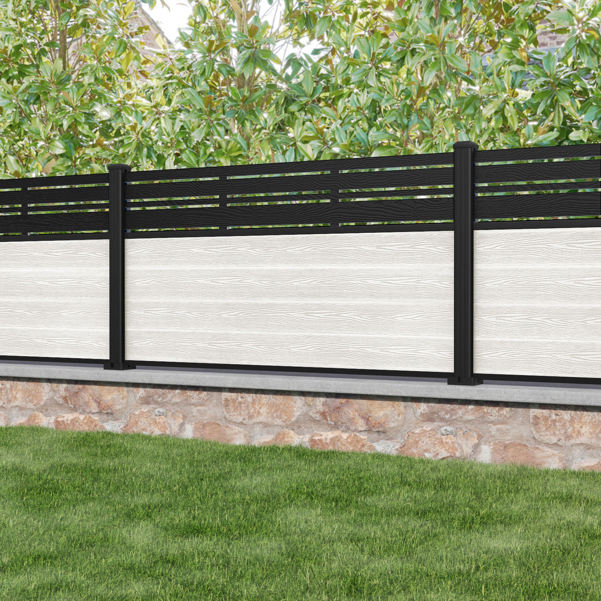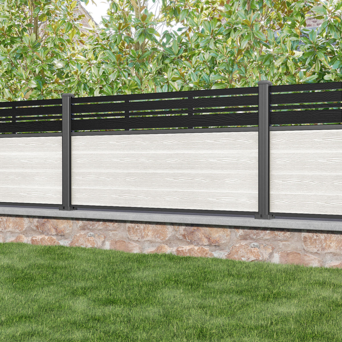 Classic Linea Fence Panel Light Stone - with our aluminium posts