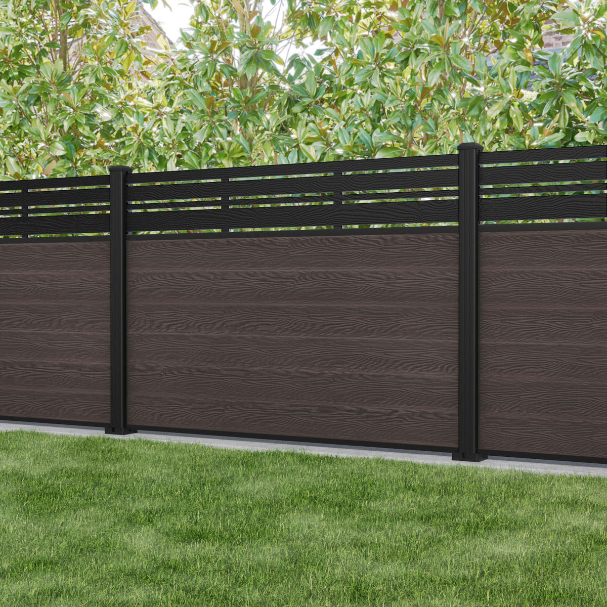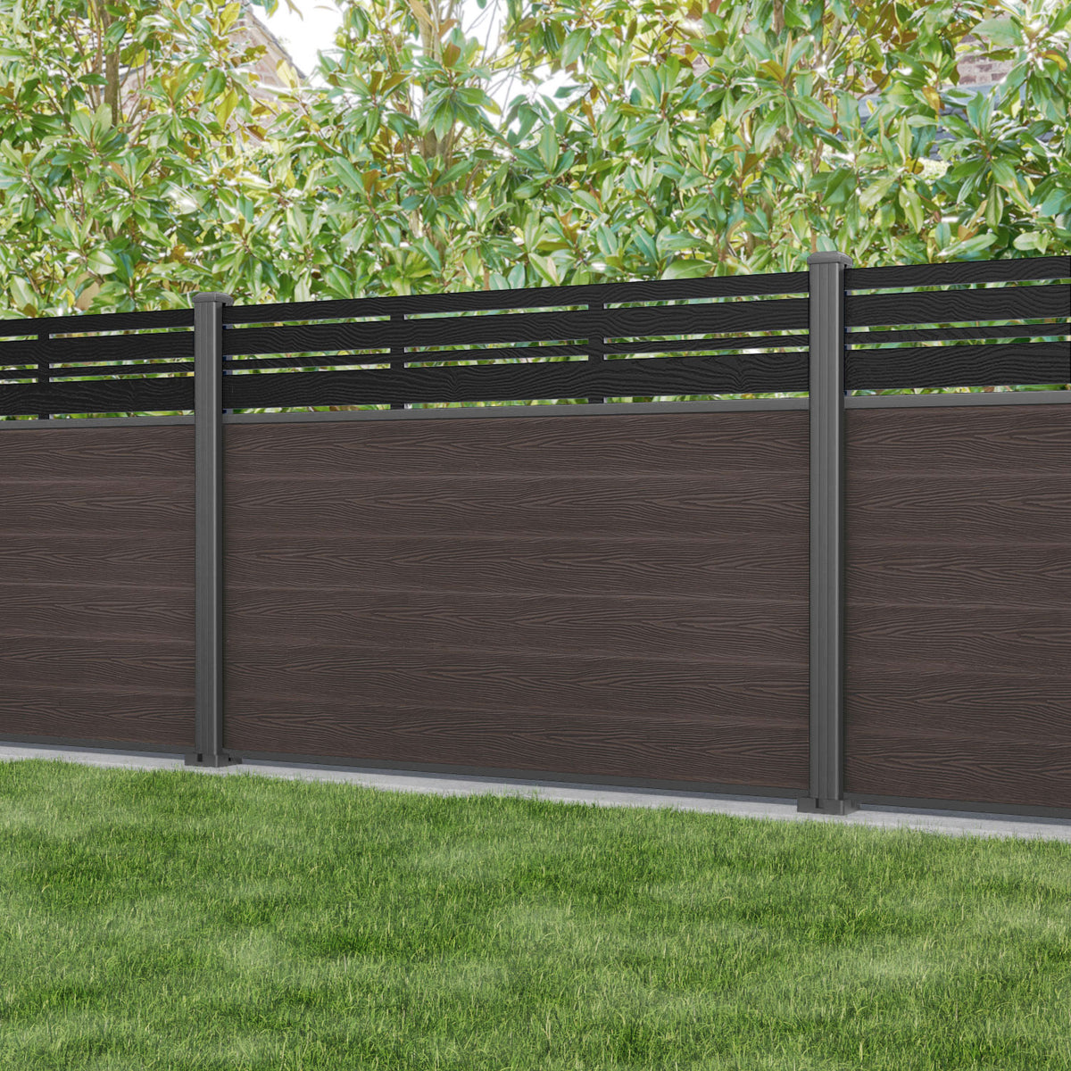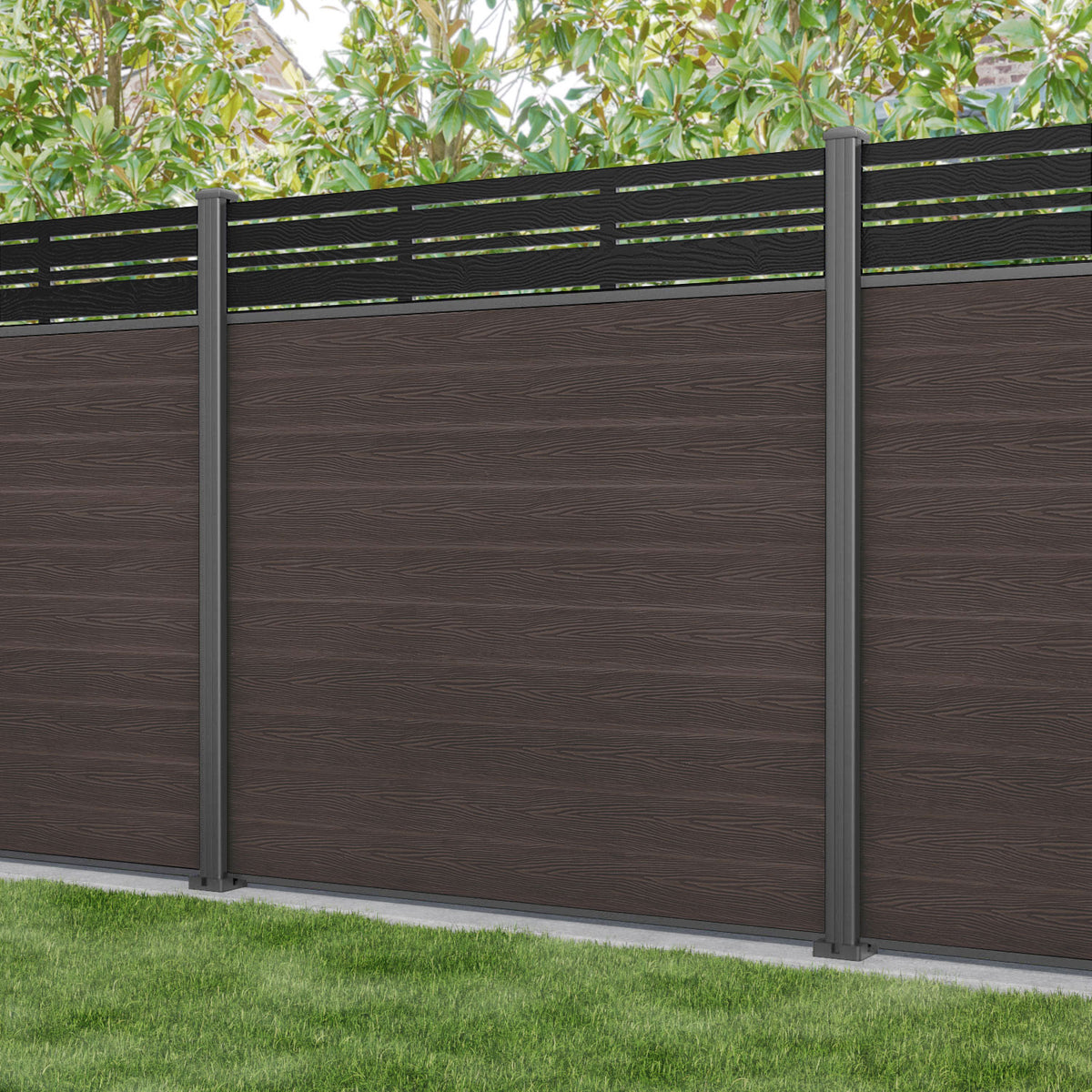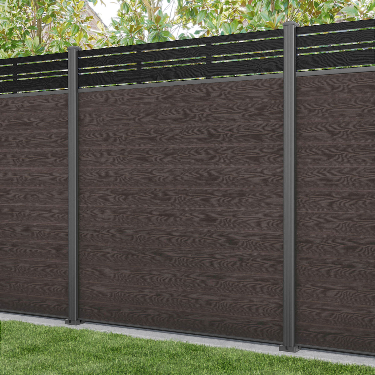 Classic Linea Fence Panel Mid Brown - with our aluminium posts