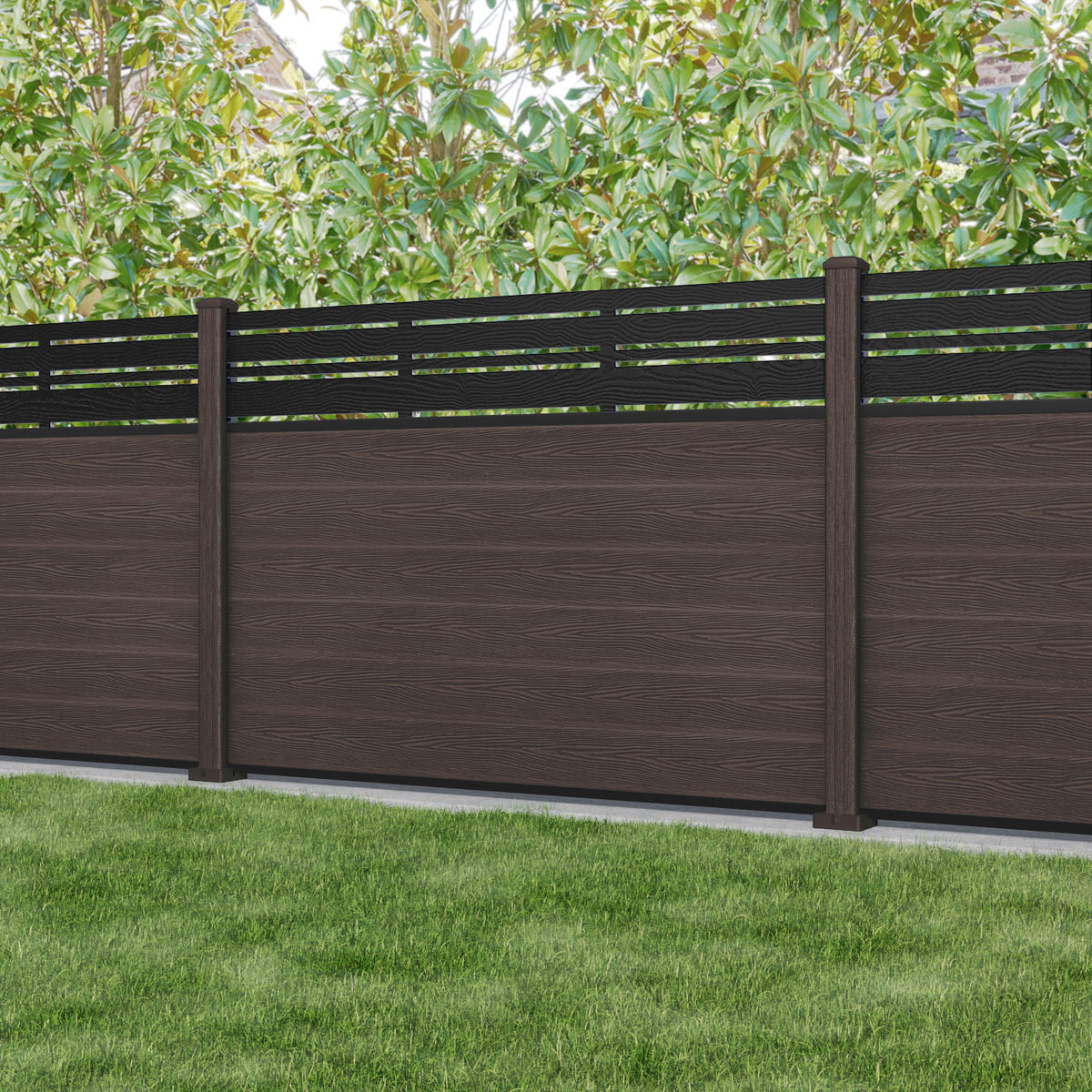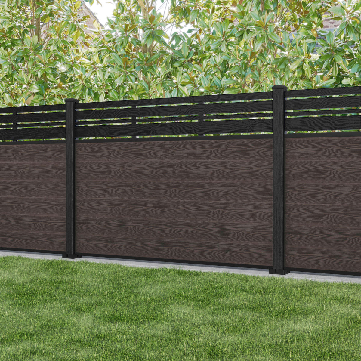 Classic Linea Fence Panel Mid Brown - with our composite posts