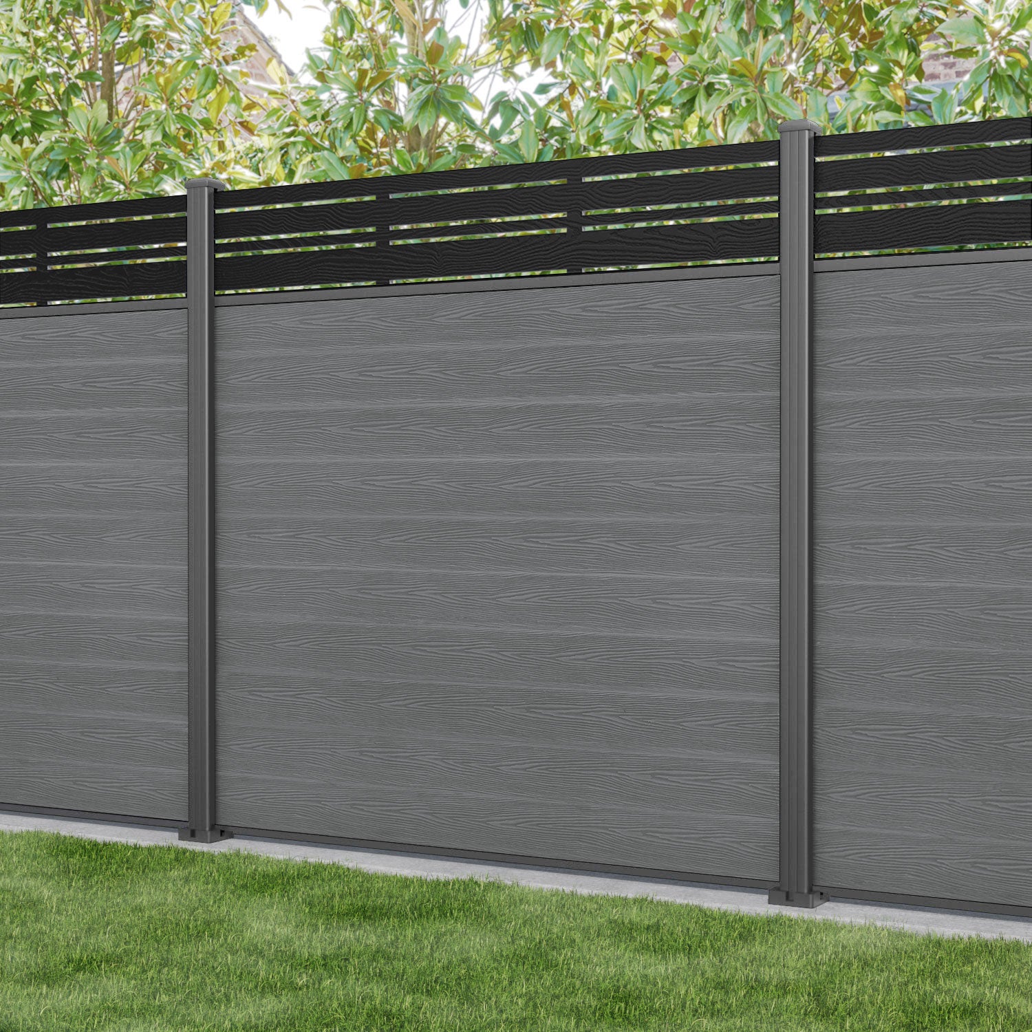 Classic Linea Fence Panel Mid Grey - with our aluminium posts