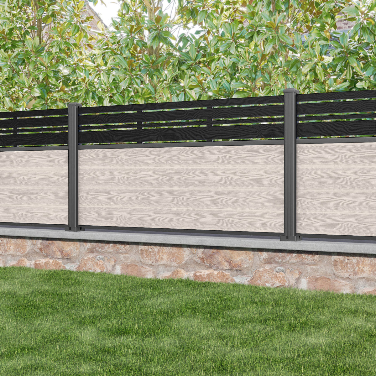 Classic Linea Fence Panel Mid Stone - with our aluminium posts