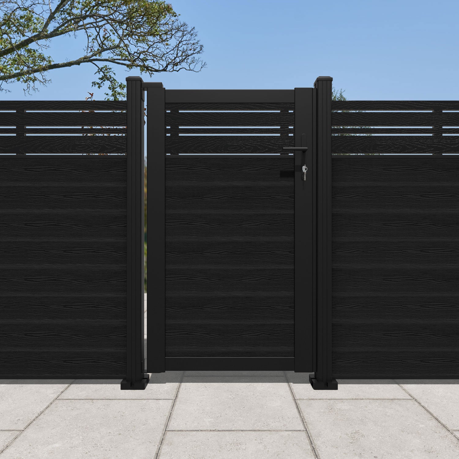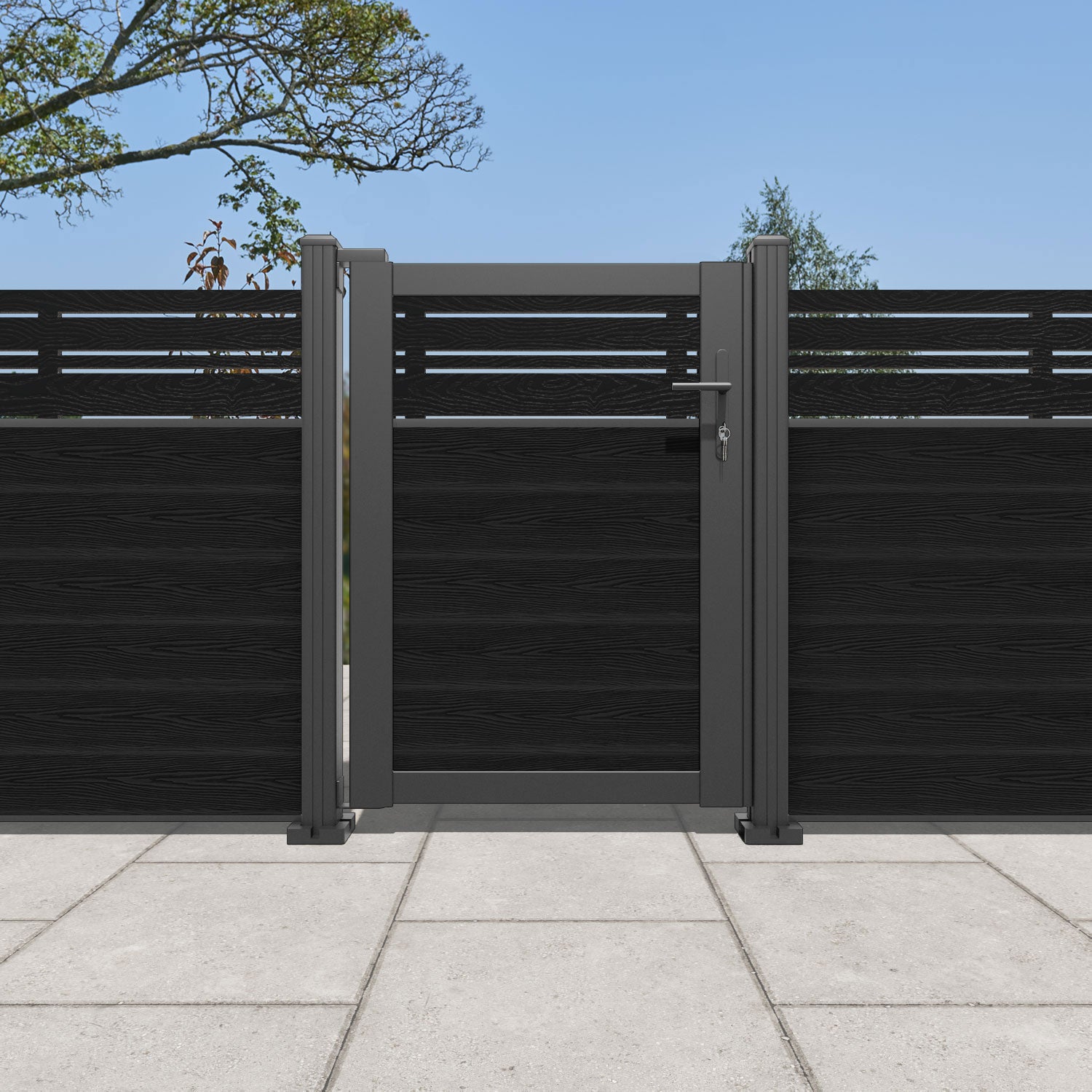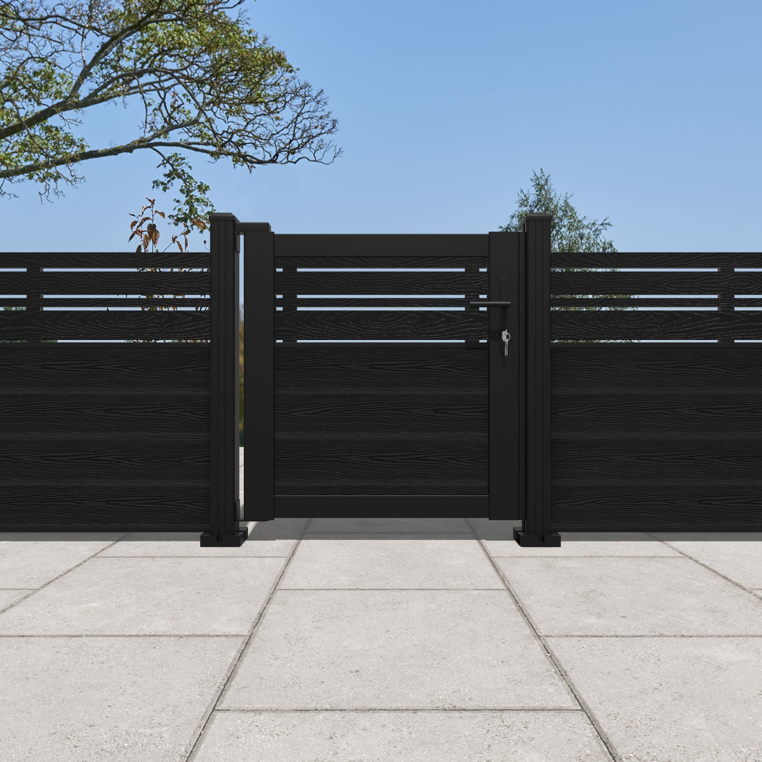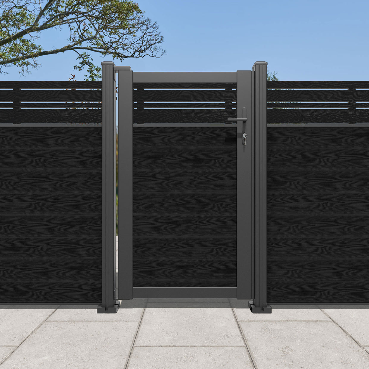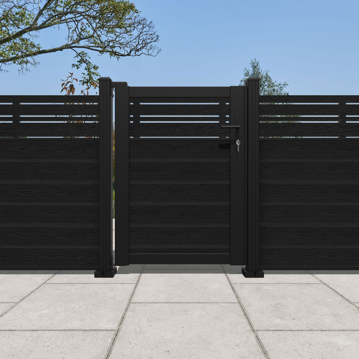 Pair your gate with our eco-friendly composite or aluminium slats for a seamless match to our fencing collections, ensuring a stylish and cohesive look.