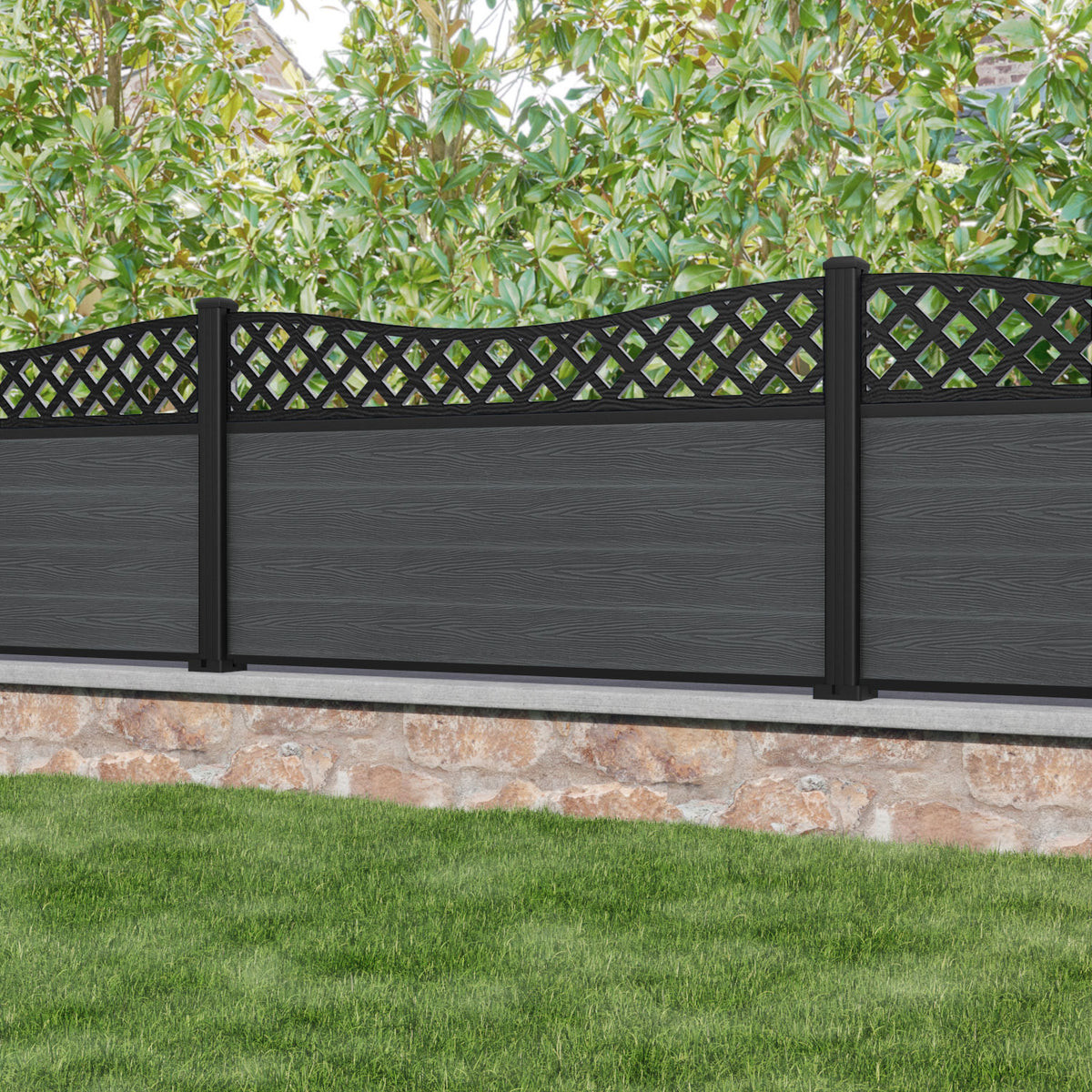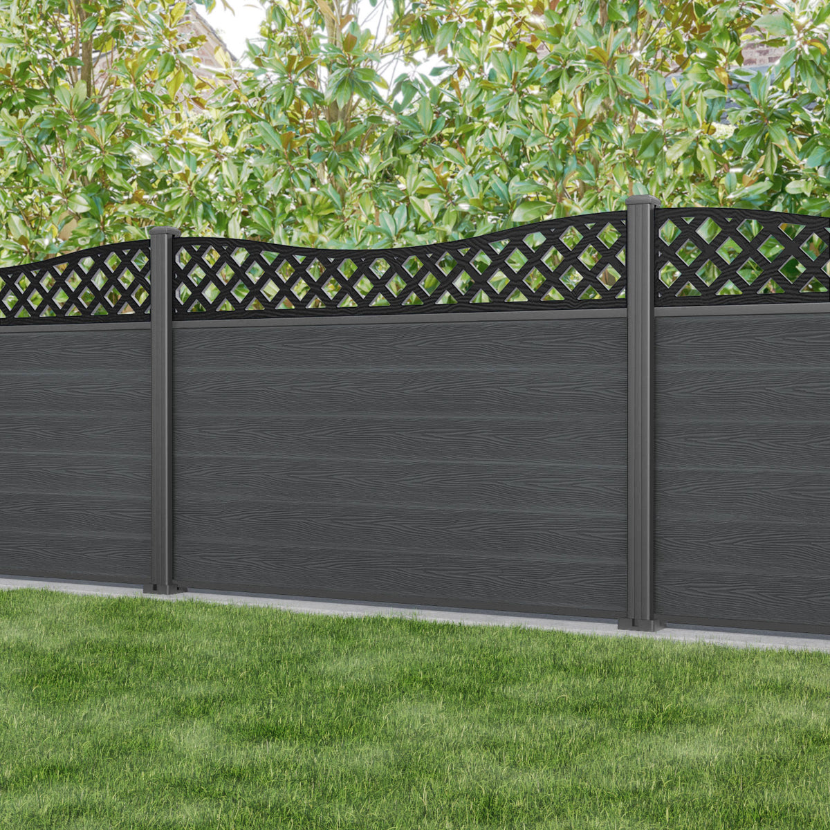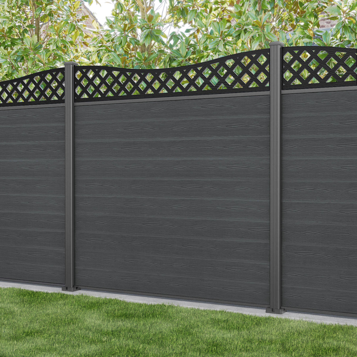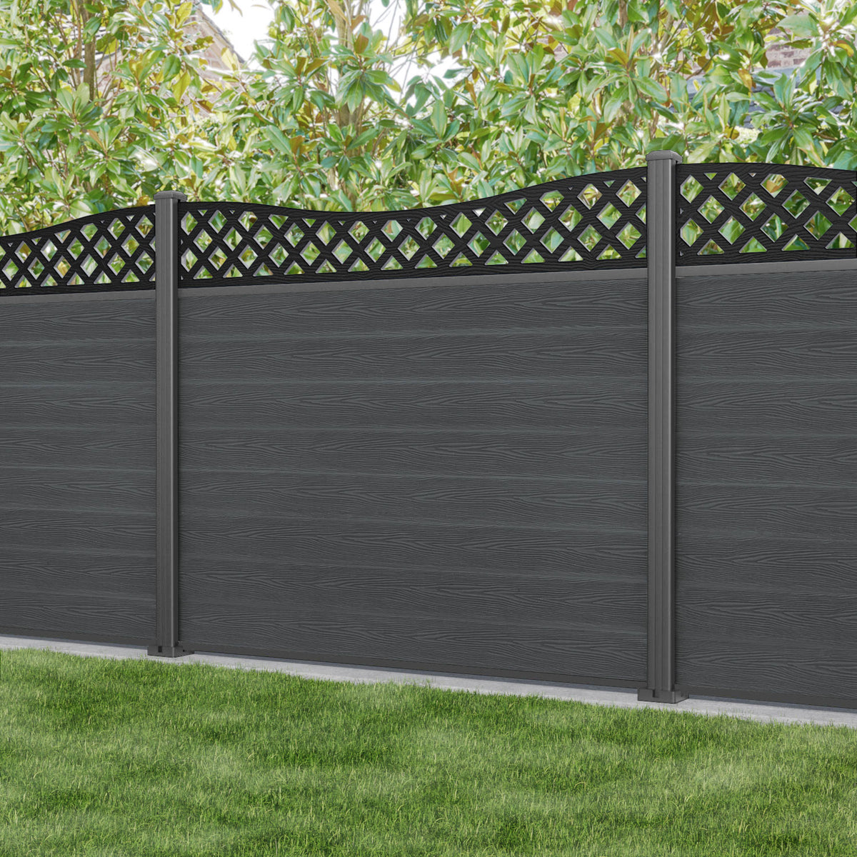 Classic Low Wave Fence Panel Dark Grey - with our aluminium posts
