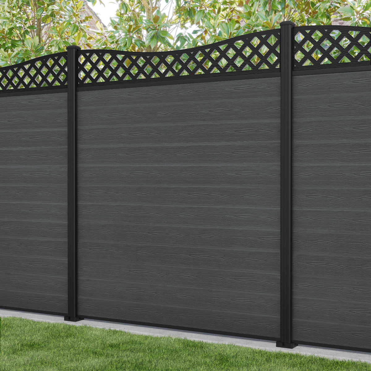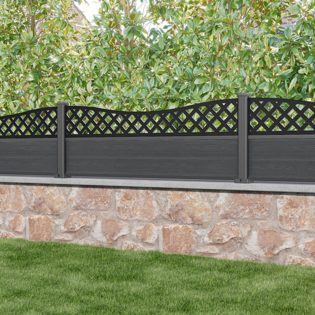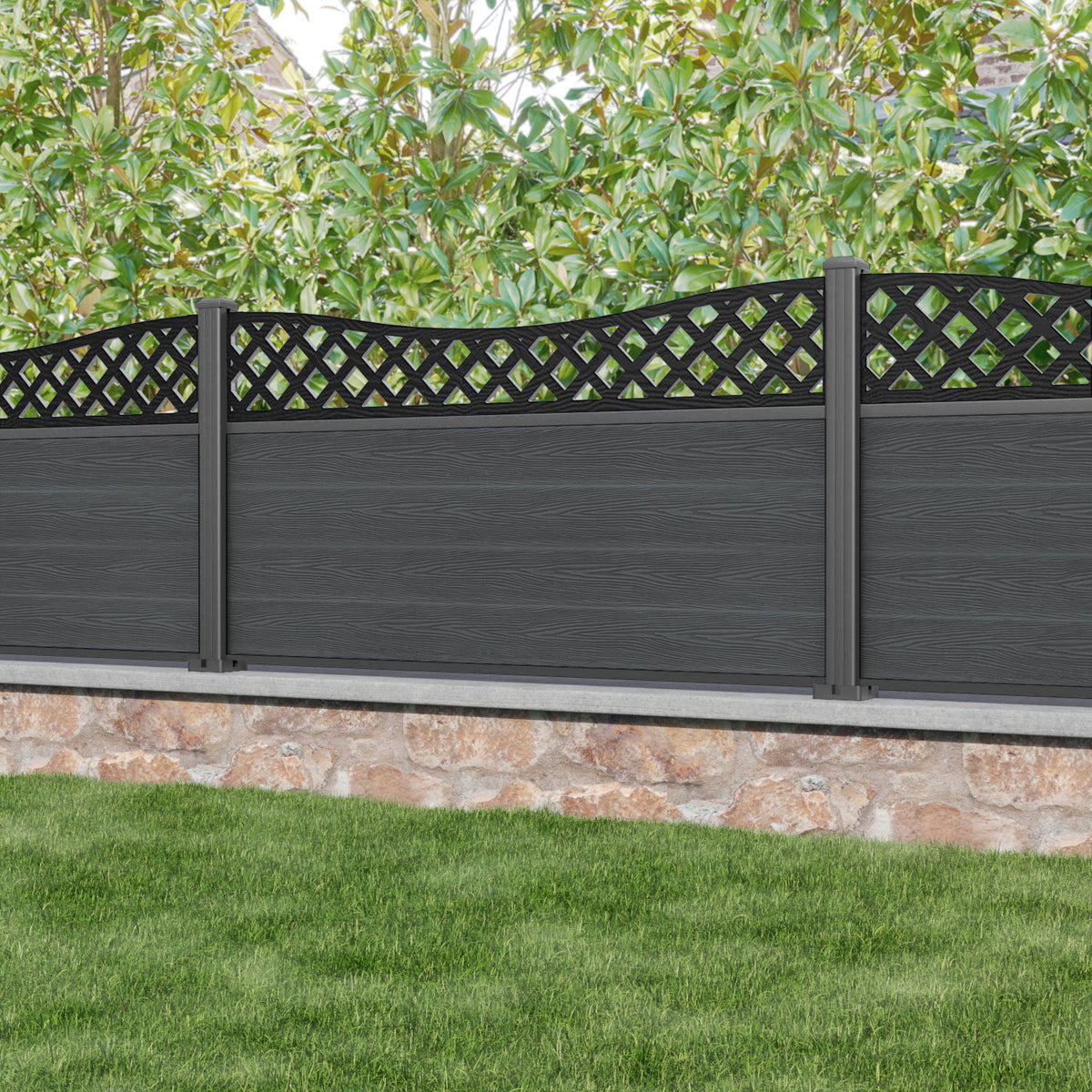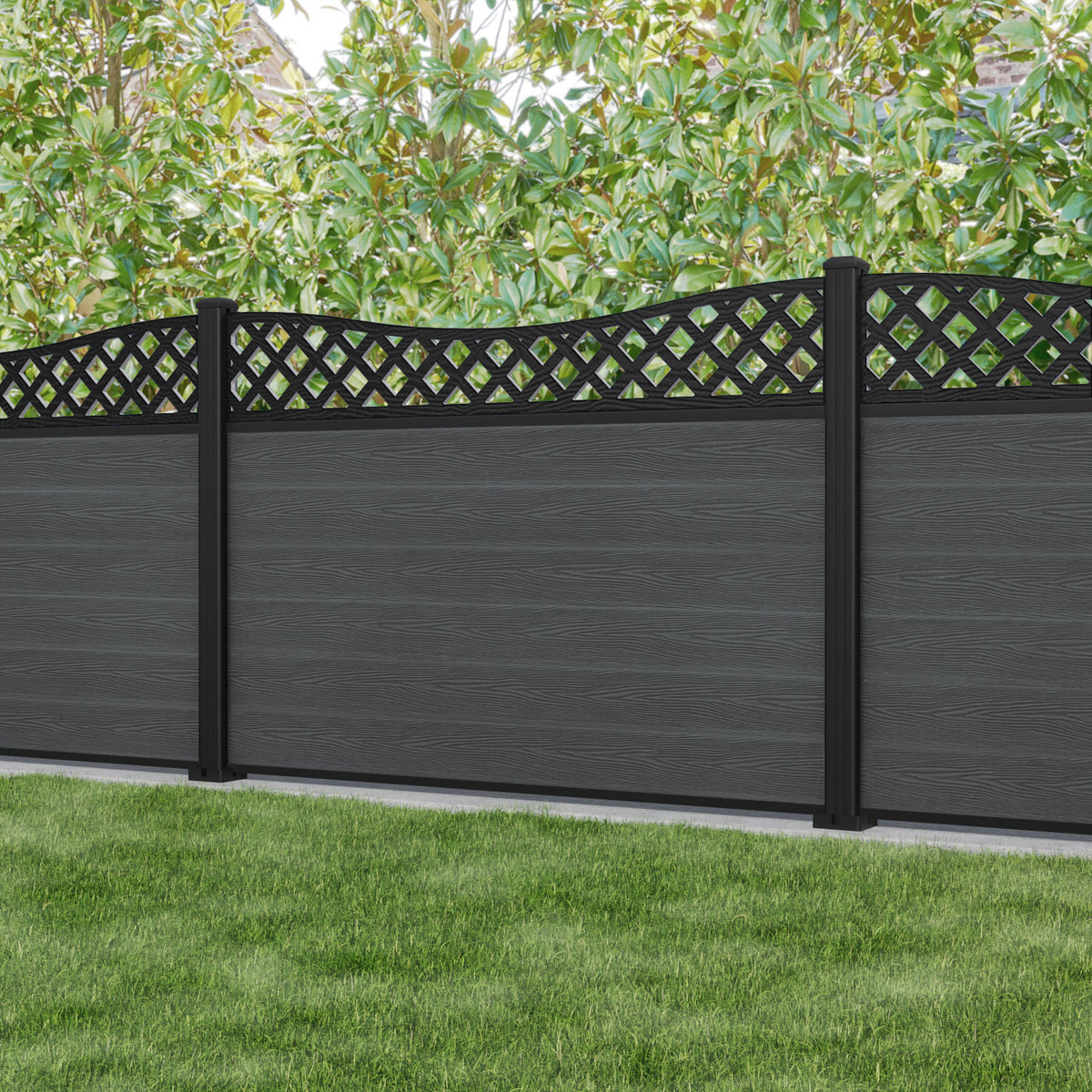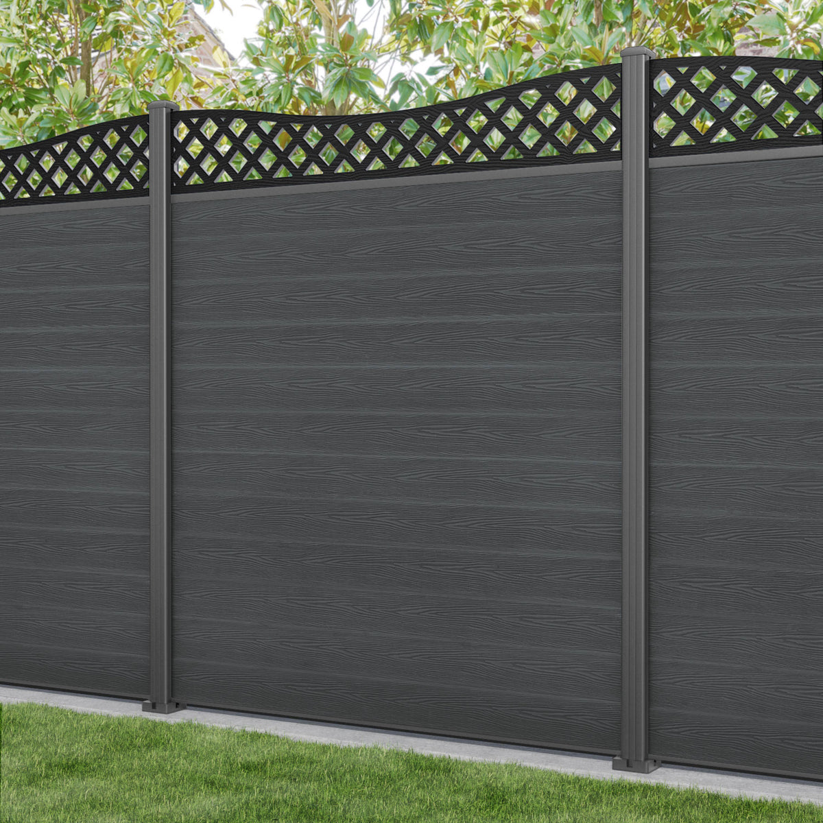 Classic Low Wave Fence Panel Dark Grey - with our aluminium posts