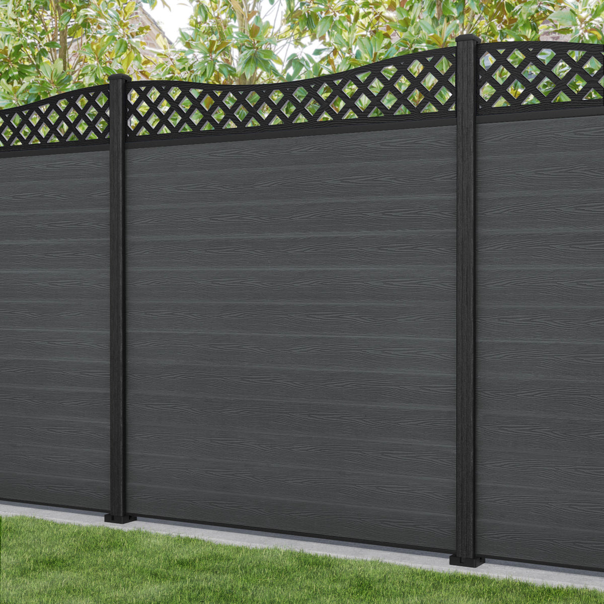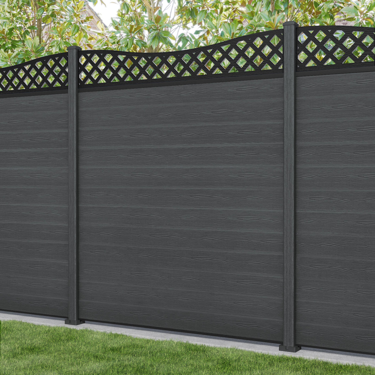 Classic Low Wave Fence Panel Dark Grey - with our composite posts