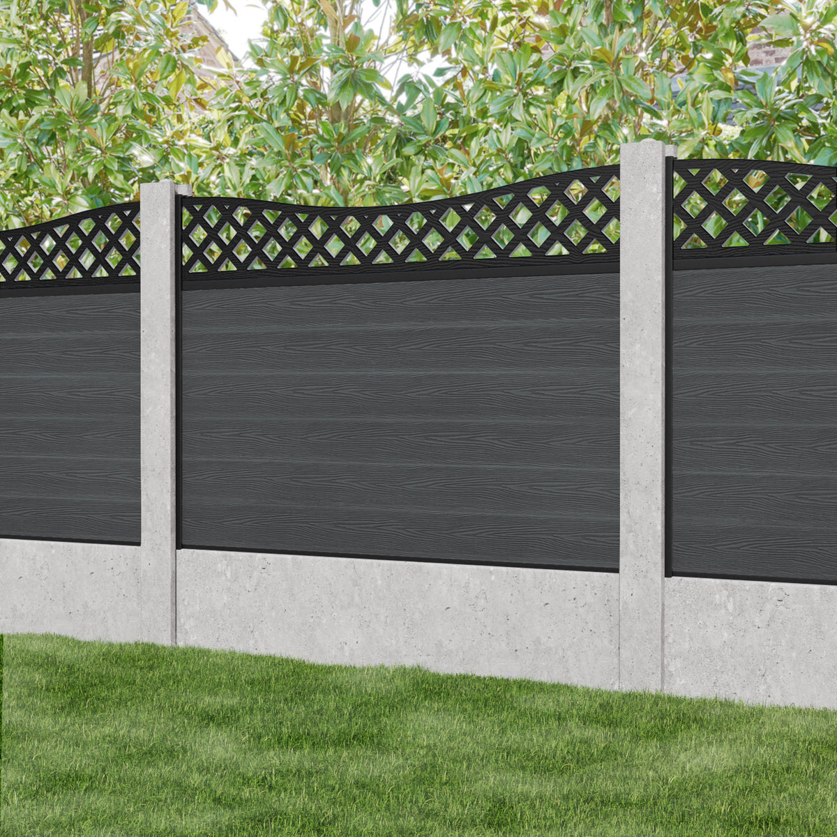 Classic Low Wave Fence Panel Dark Grey - for existing concrete posts