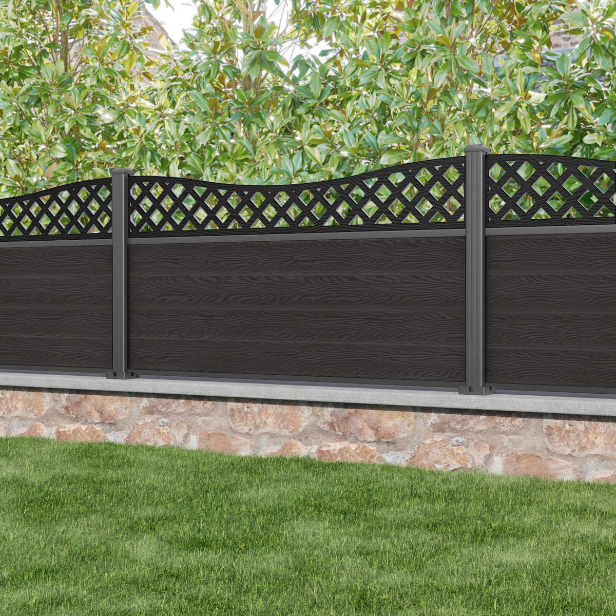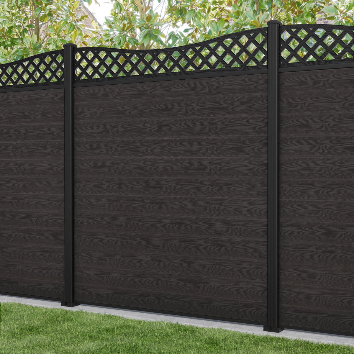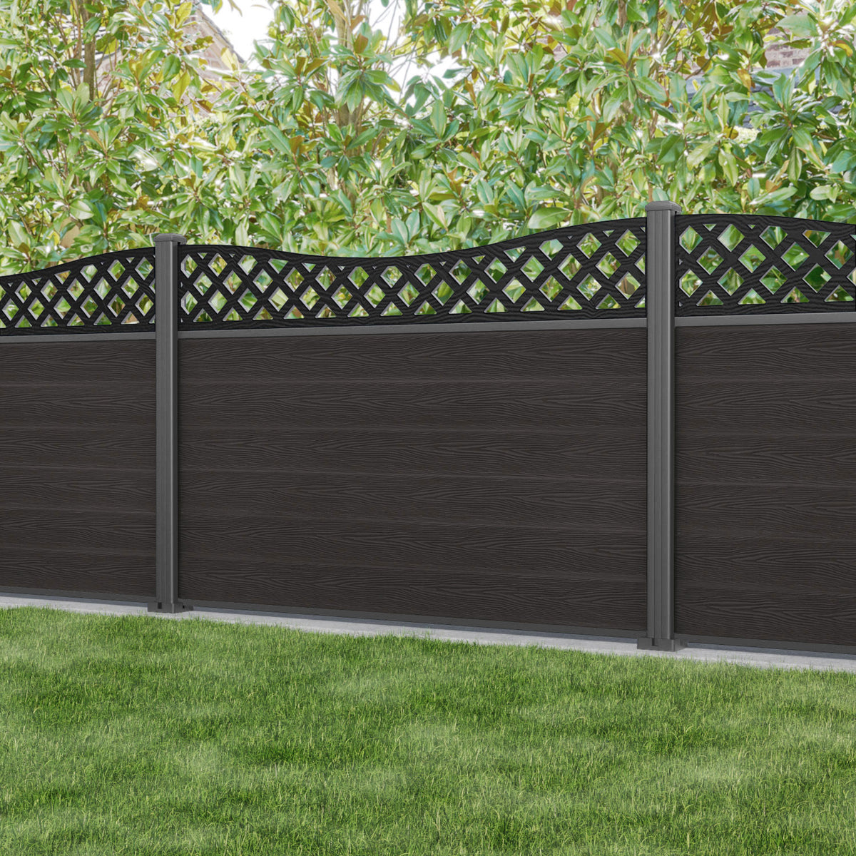 Classic Low Wave Fence Panel Dark Oak - with our aluminium posts