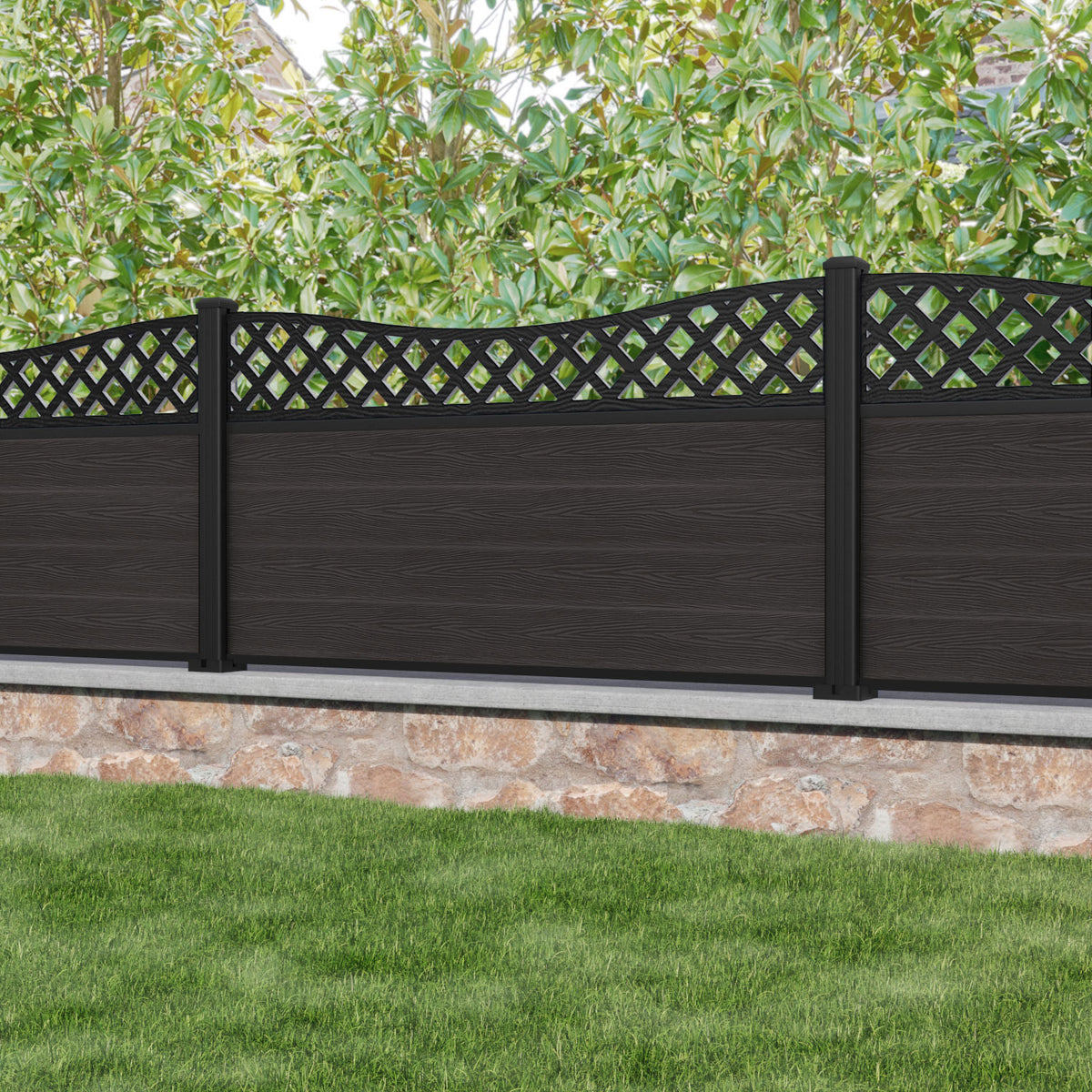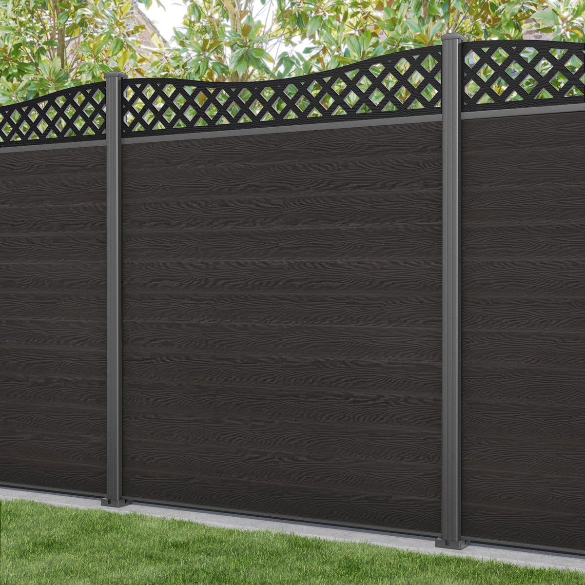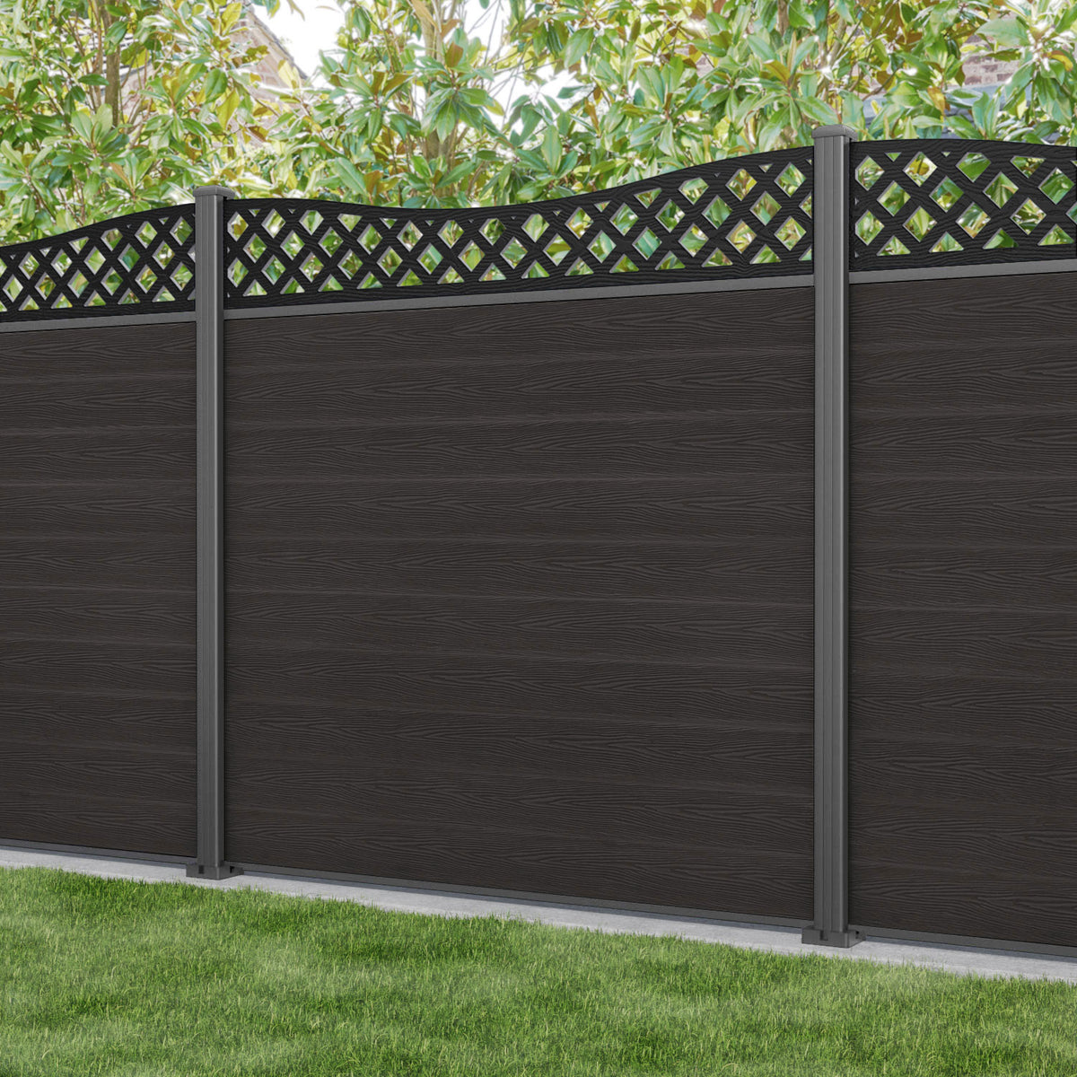 Classic Low Wave Fence Panel Dark Oak - with our aluminium posts