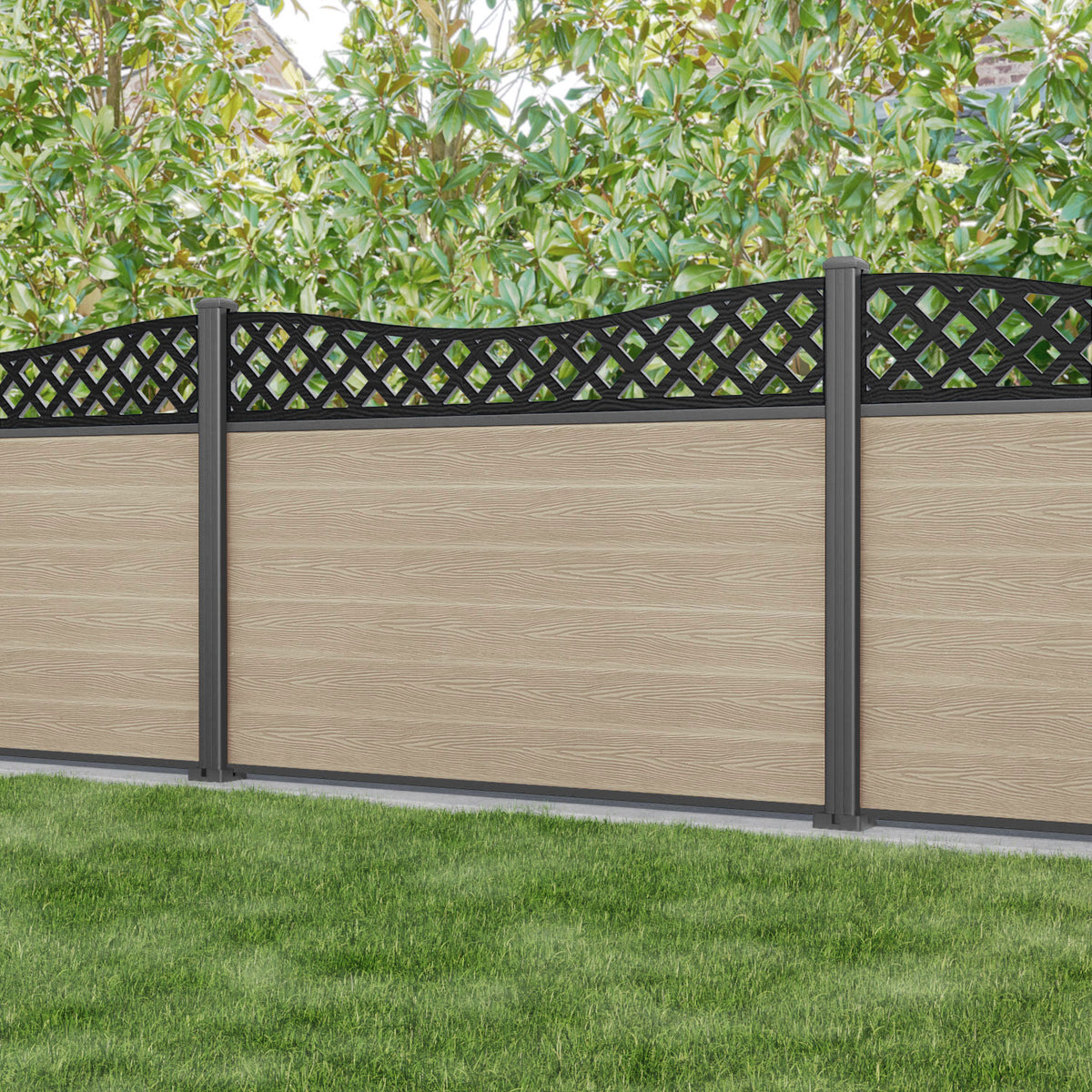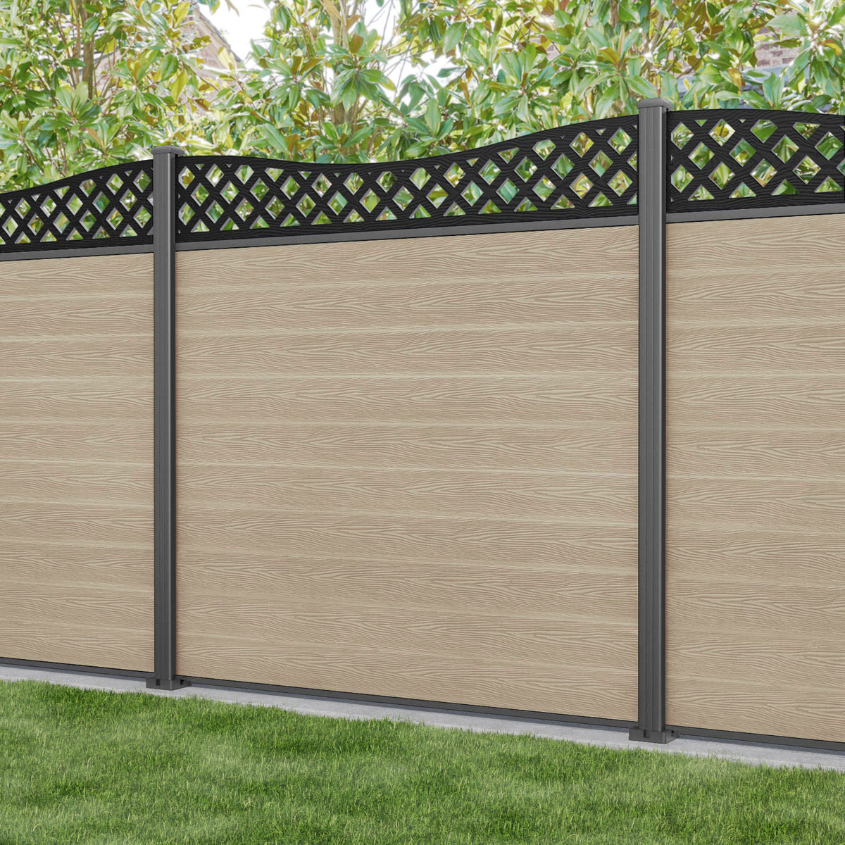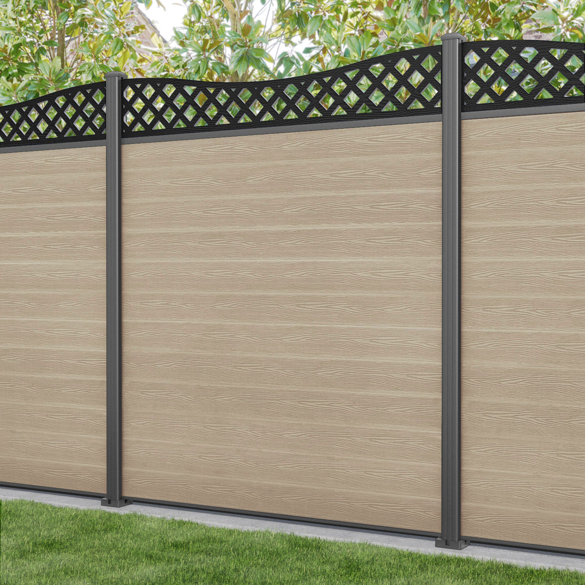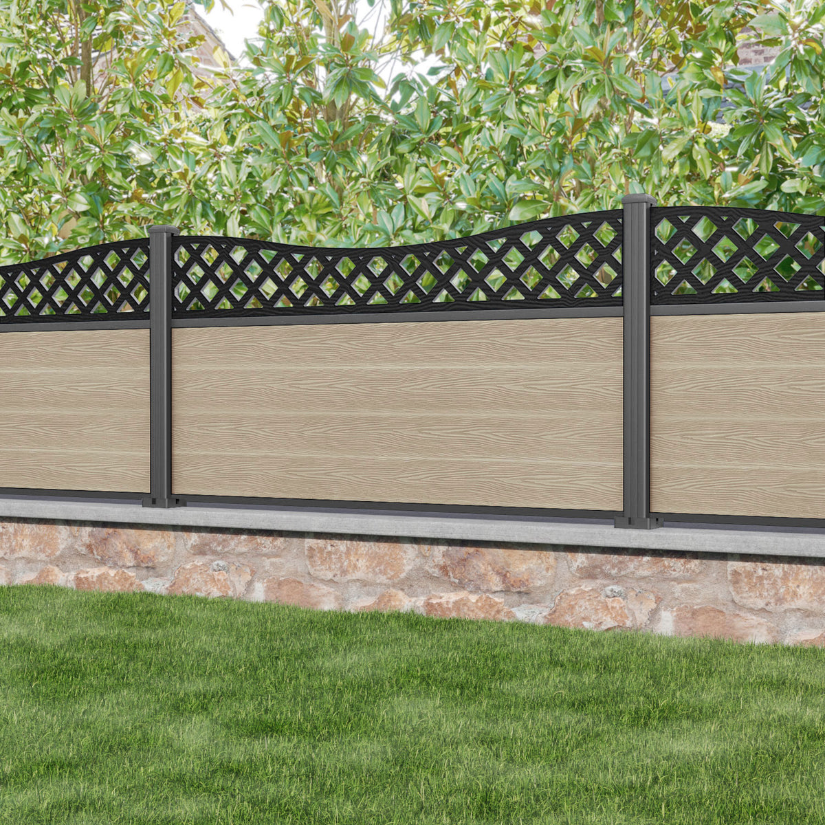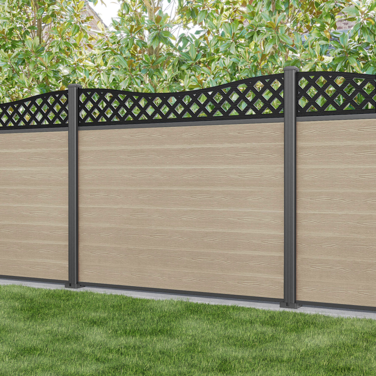 Classic Low Wave Fence Panel Light Oak - with our aluminium posts