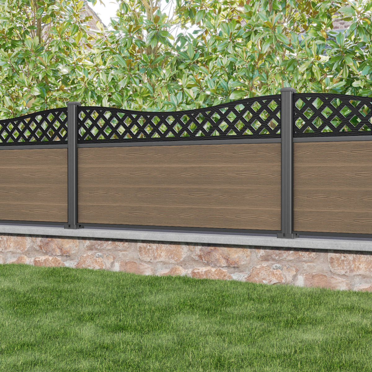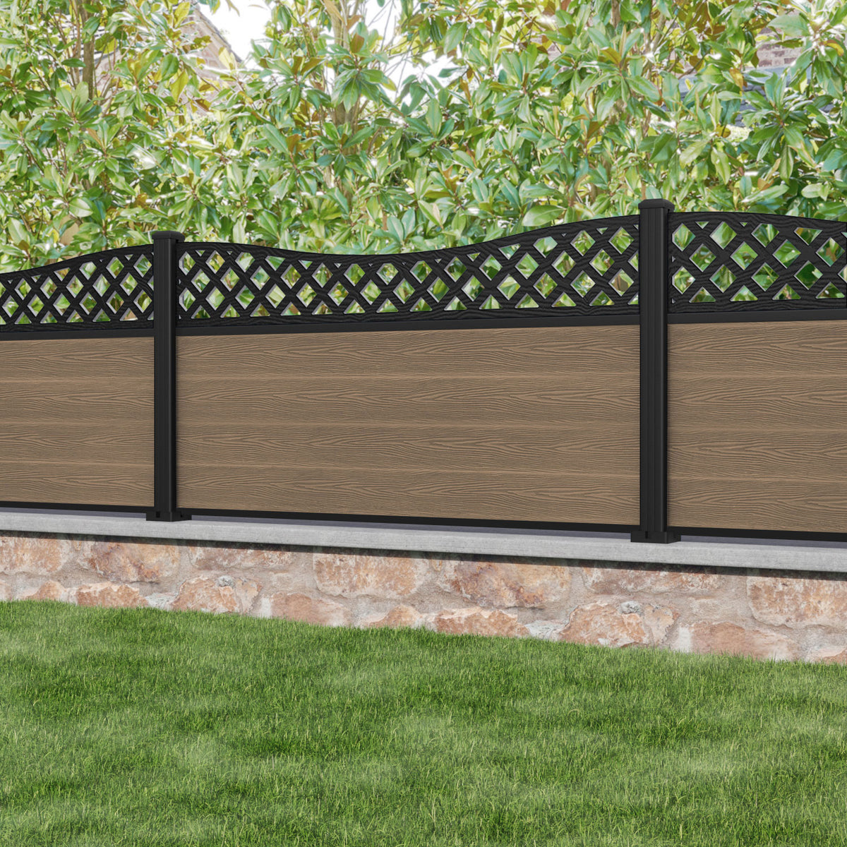 Classic Low Wave Fence Panel Teak - with our aluminium posts