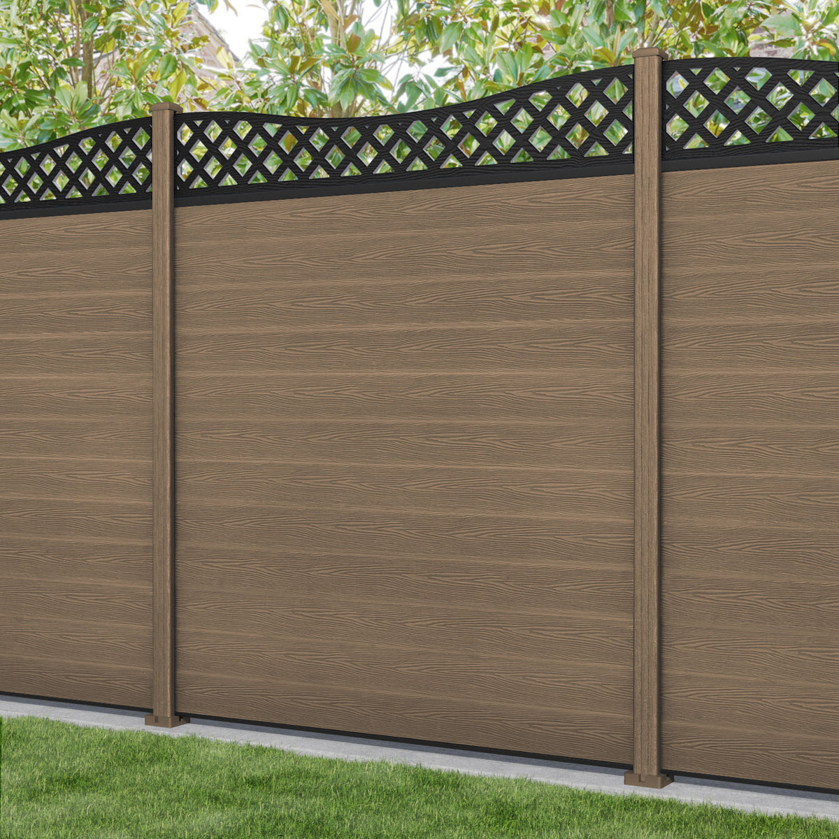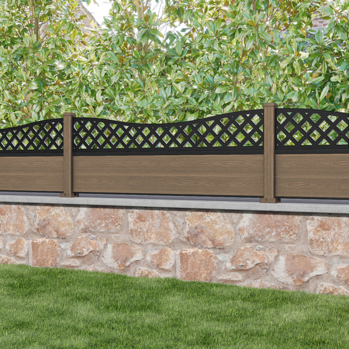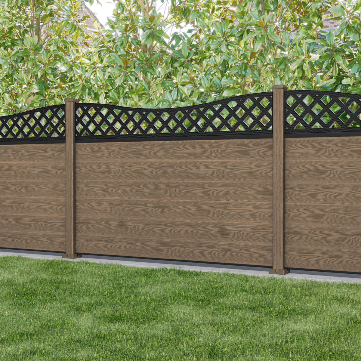 Classic Low Wave Fence Panel Teak - with our composite posts