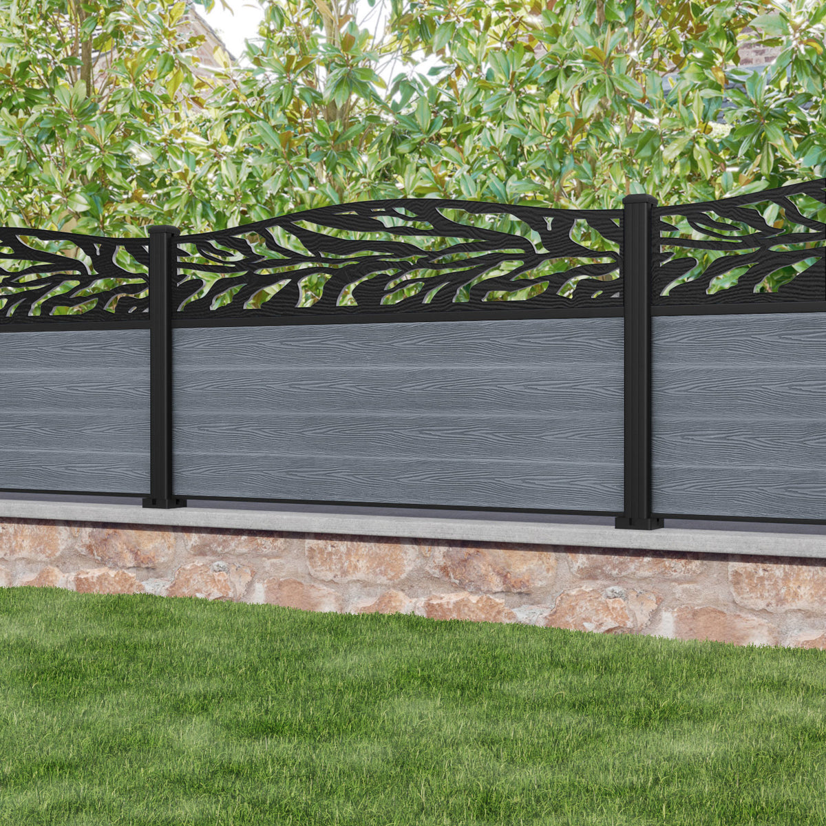 Classic Malawi Curved Top Fence Panel Anthracite - with our aluminium posts