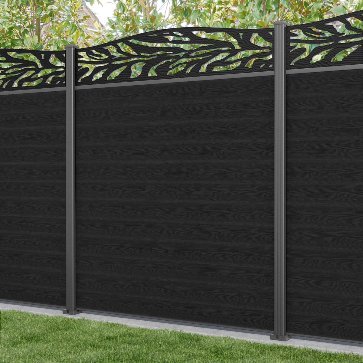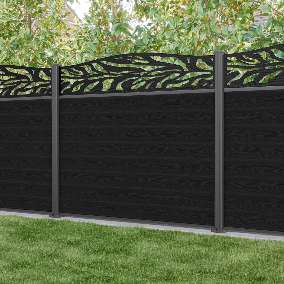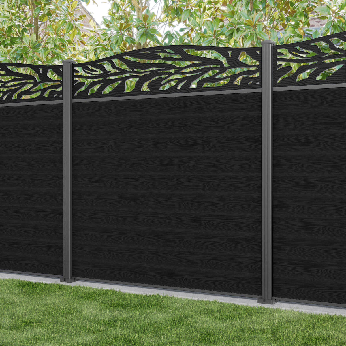 Classic Malawi Curved Top Fence Panel Black - with our aluminium posts