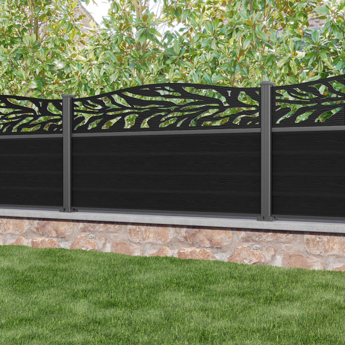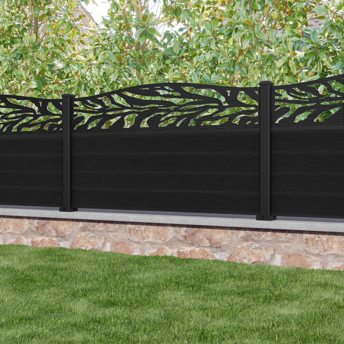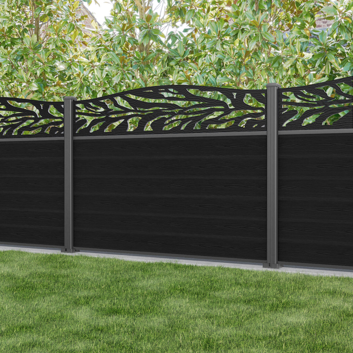Classic Malawi Curved Top Fence Panel Black - with our aluminium posts