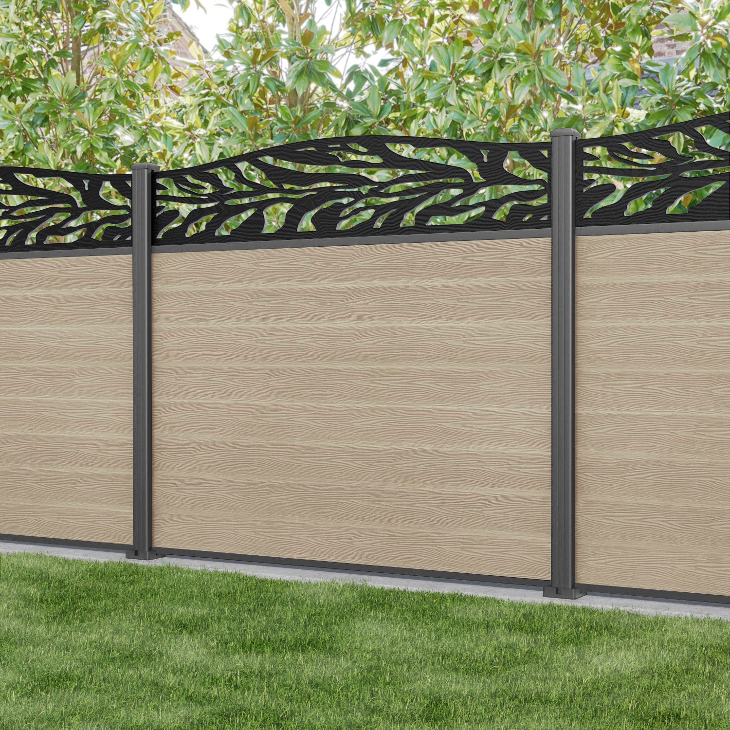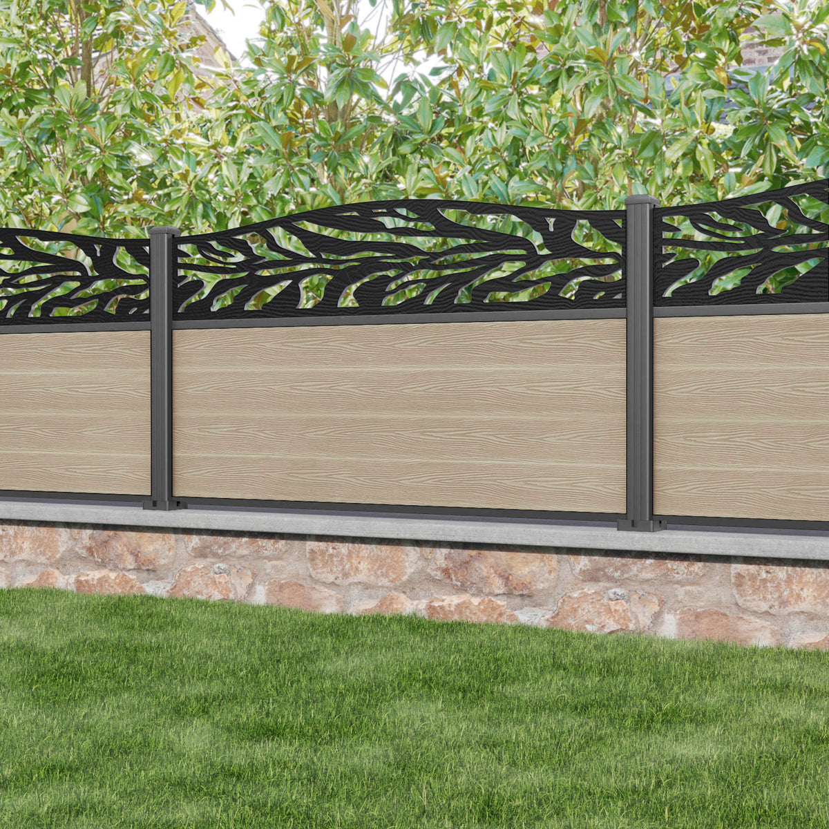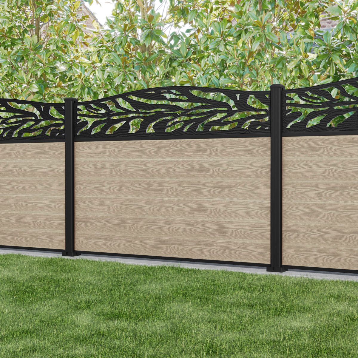 Classic Malawi Curved Top Fence Panel Light Oak - with our aluminium posts