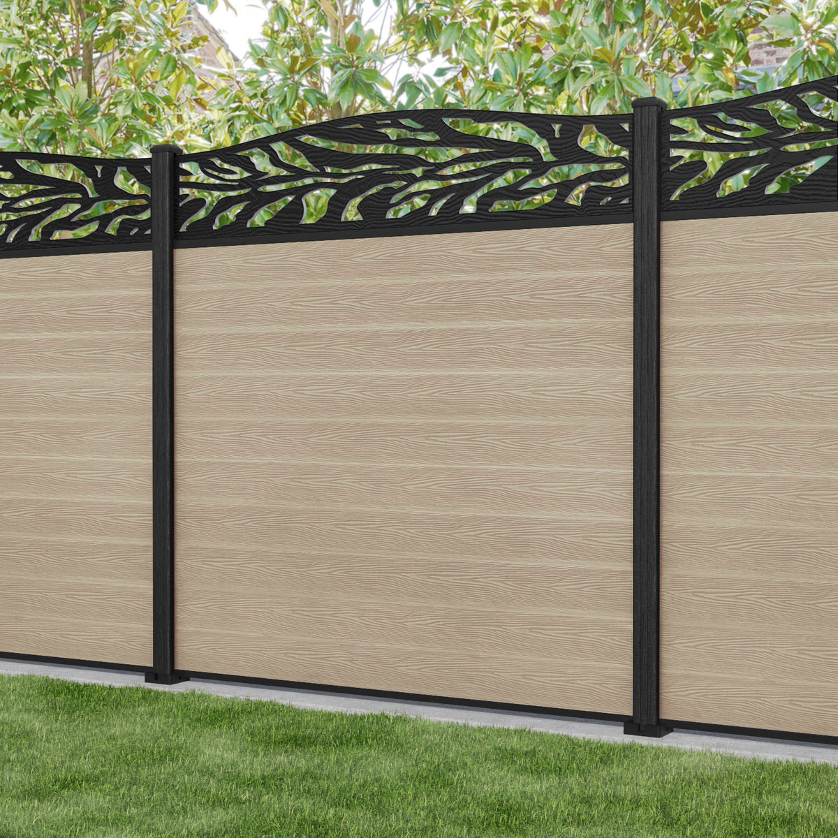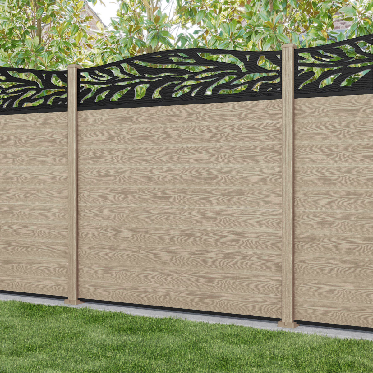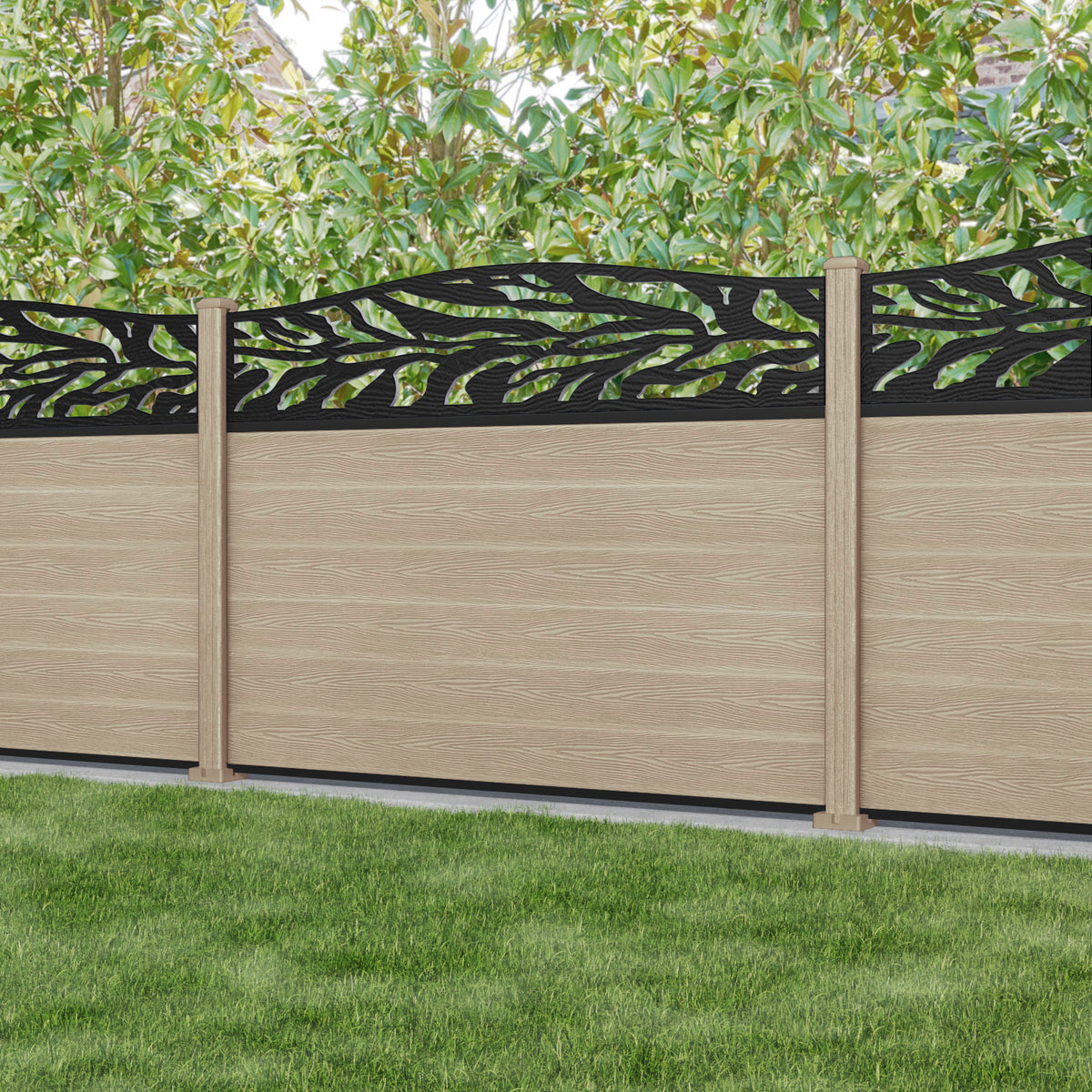 Classic Malawi Curved Top Fence Panel Light Oak - with our composite posts