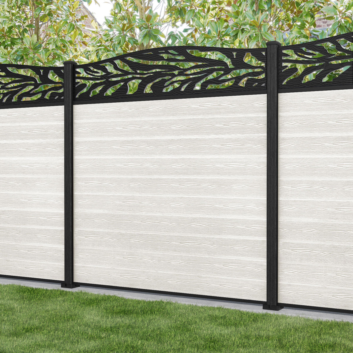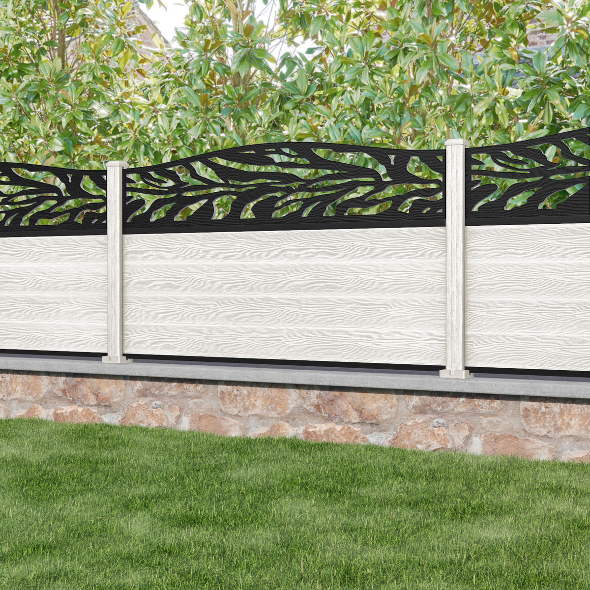 Classic Malawi Curved Top Fence Panel Light Stone - with our composite posts