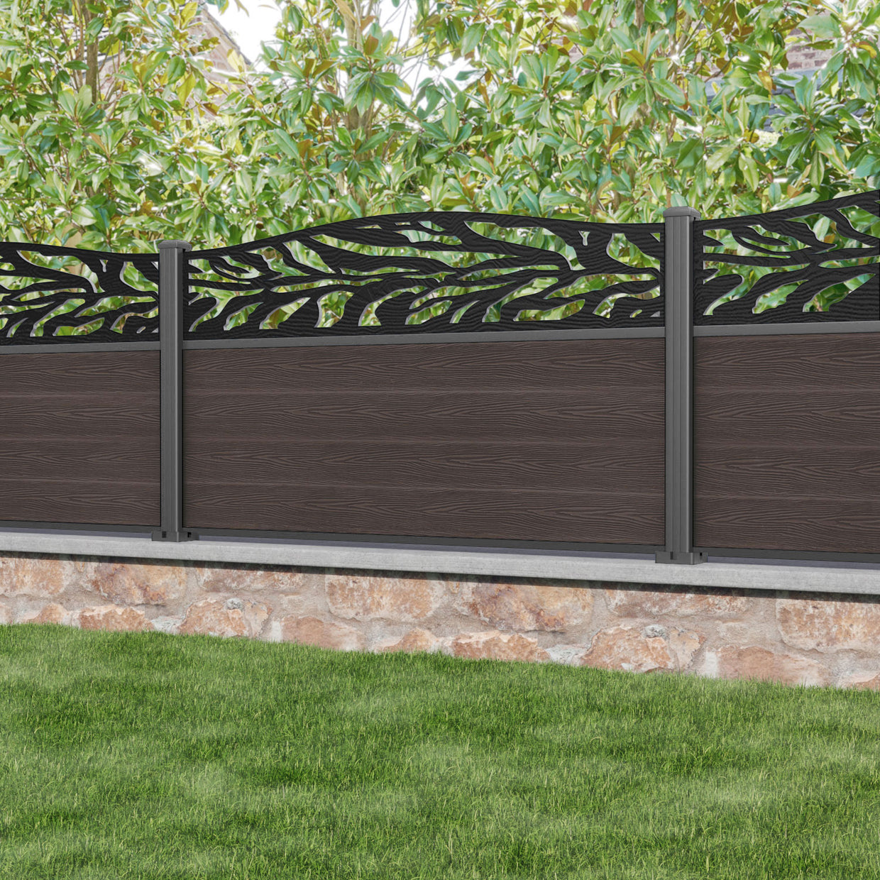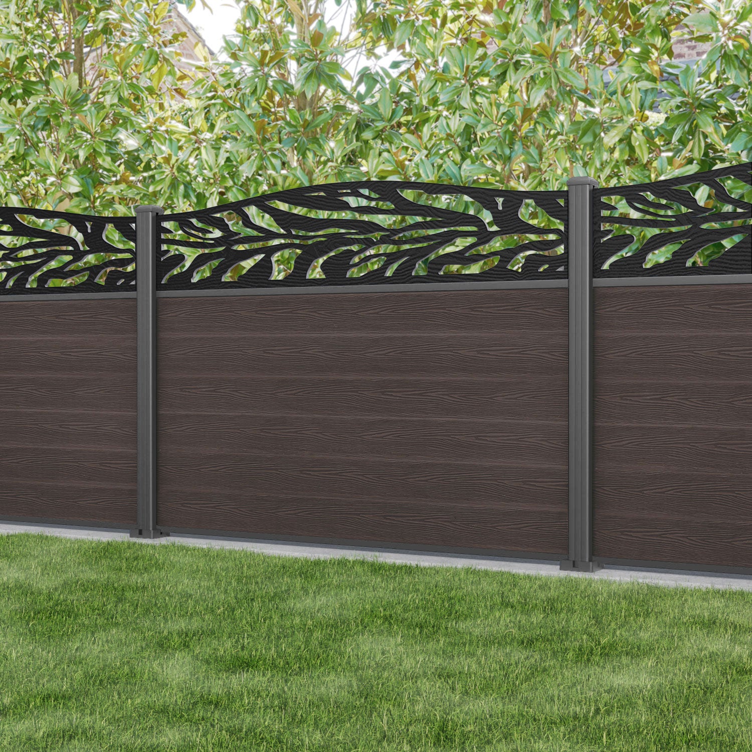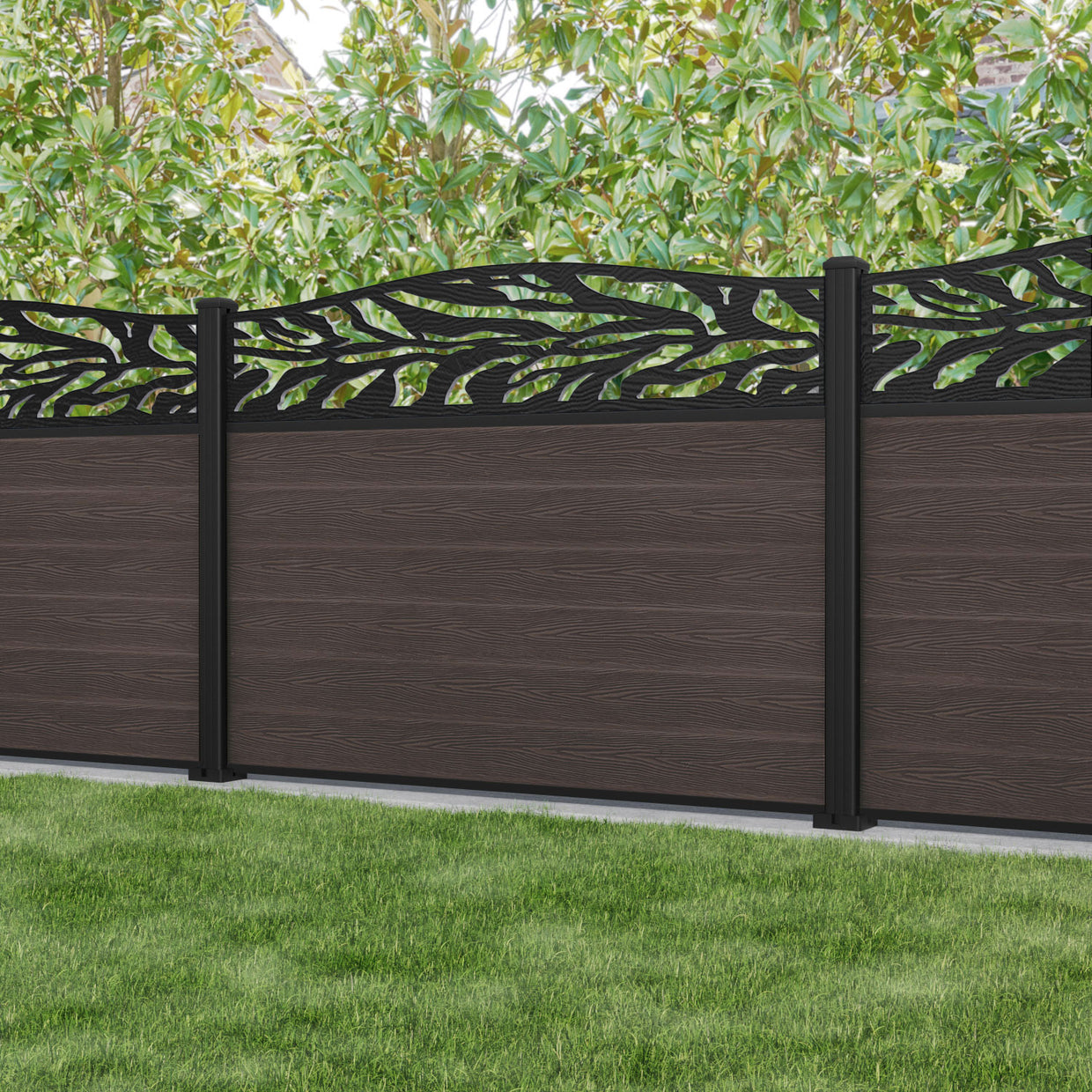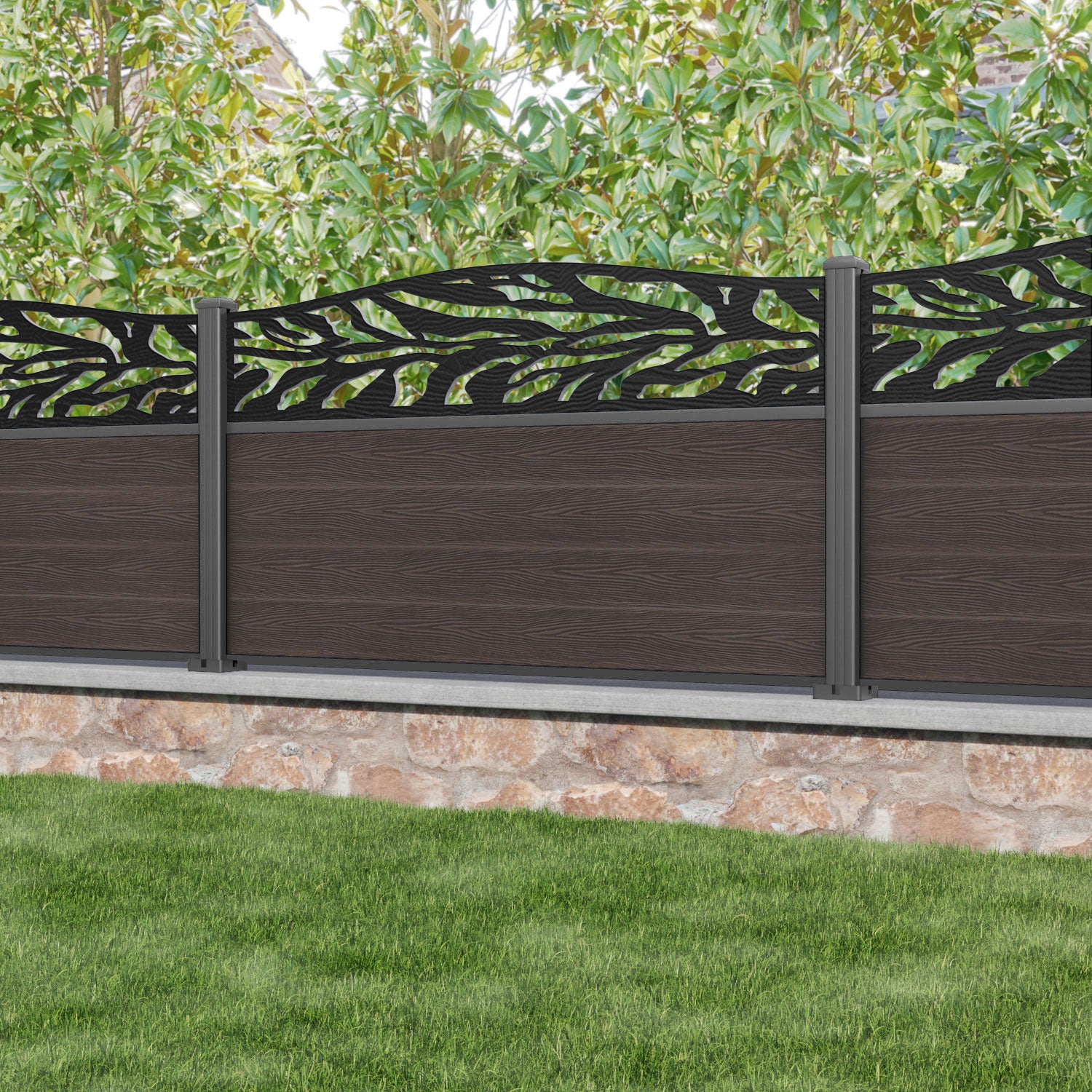 Classic Malawi Curved Top Fence Panel Mid Brown - with our aluminium posts