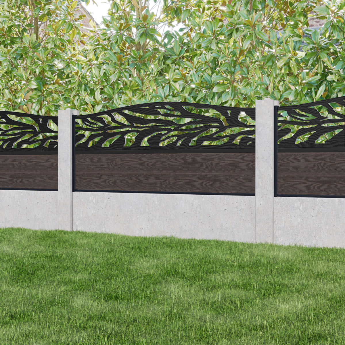 Classic Malawi Curved Top Fence Panel Mid Brown - for existing concrete posts