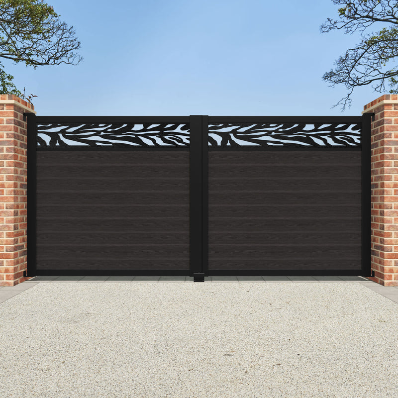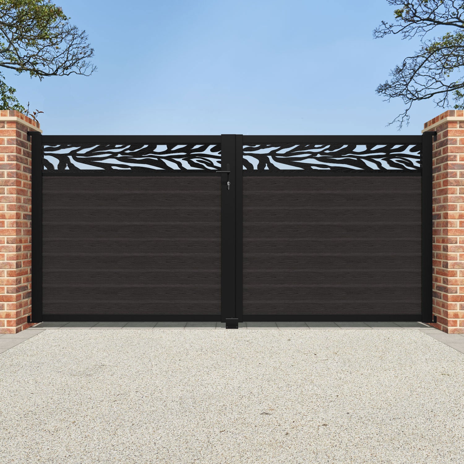Classic Malawi Straight Top Driveway Gate Dark Oak - Top Screen