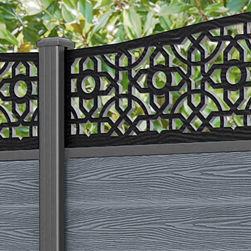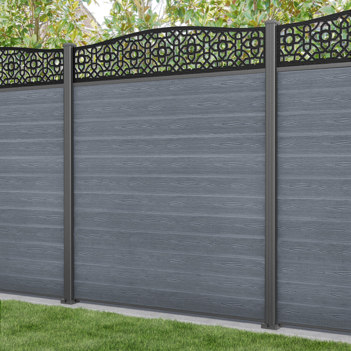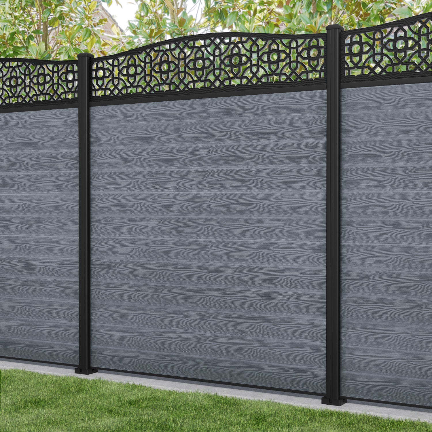 Classic Nabila Curved Top Fence Panel Anthracite - with our aluminium posts