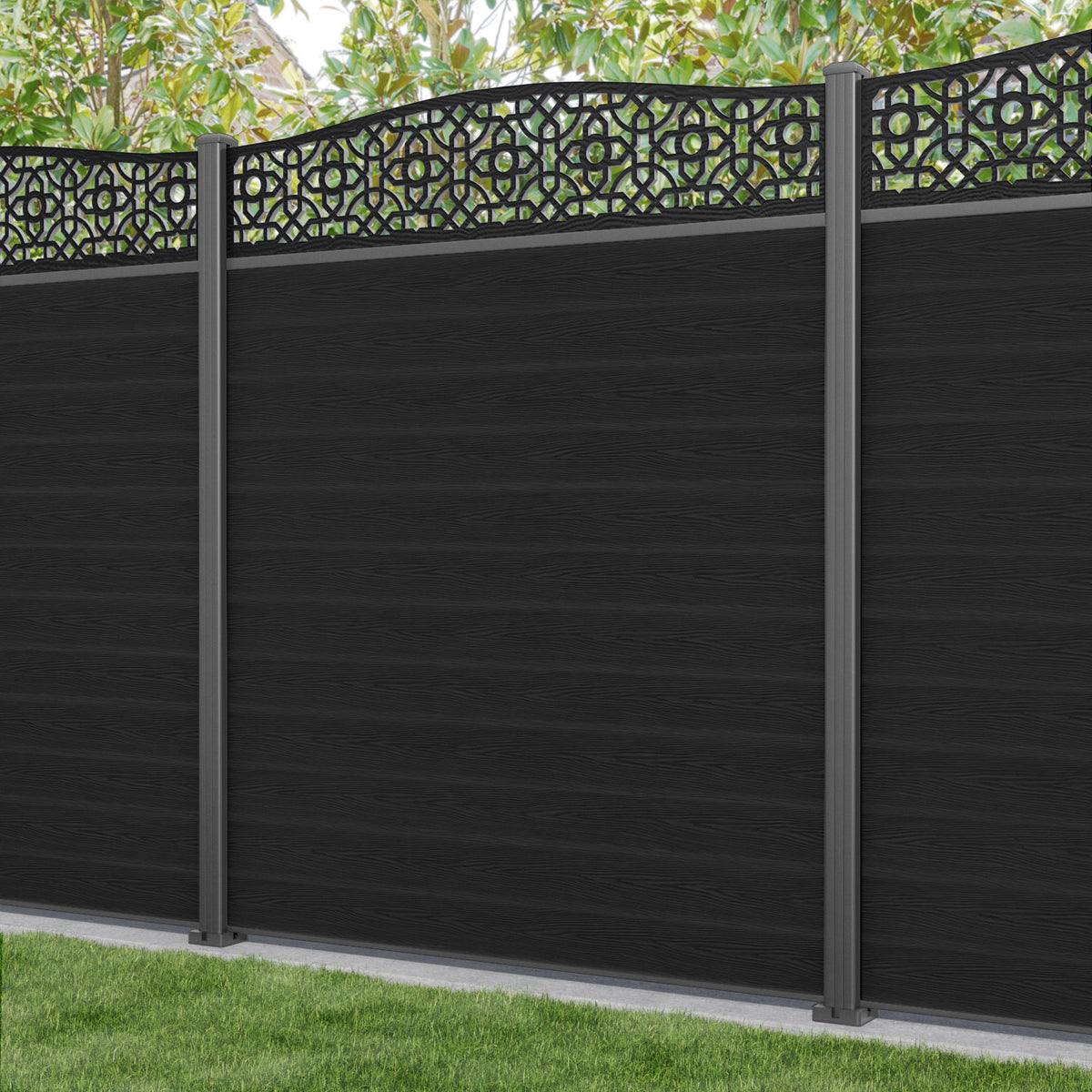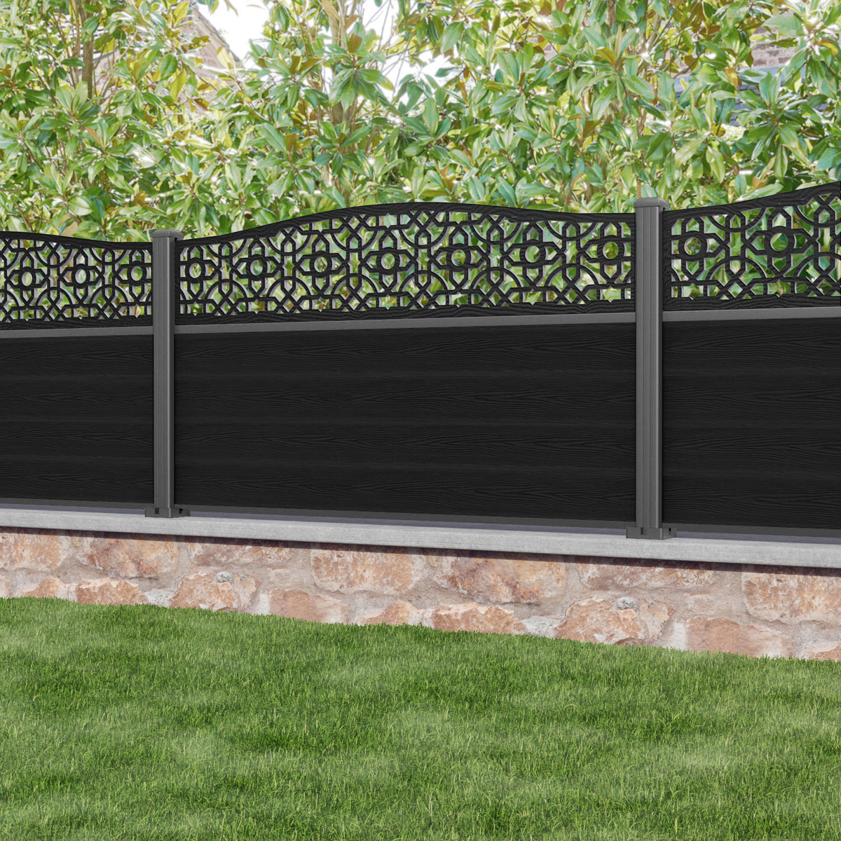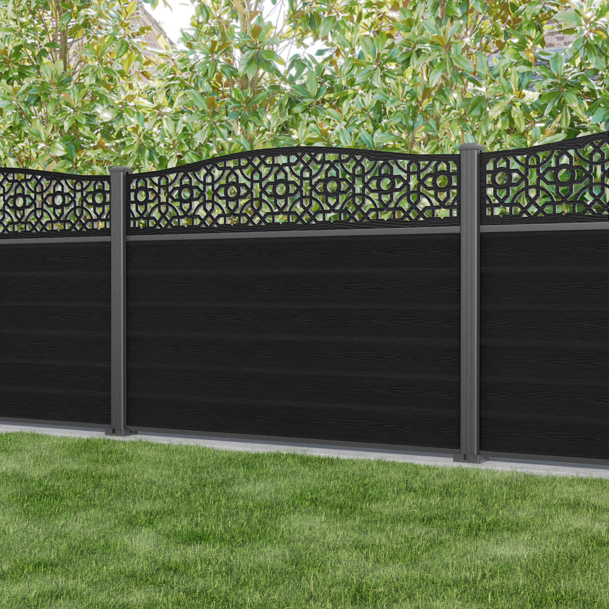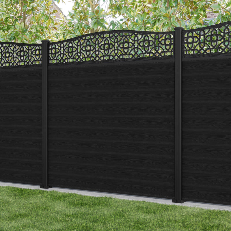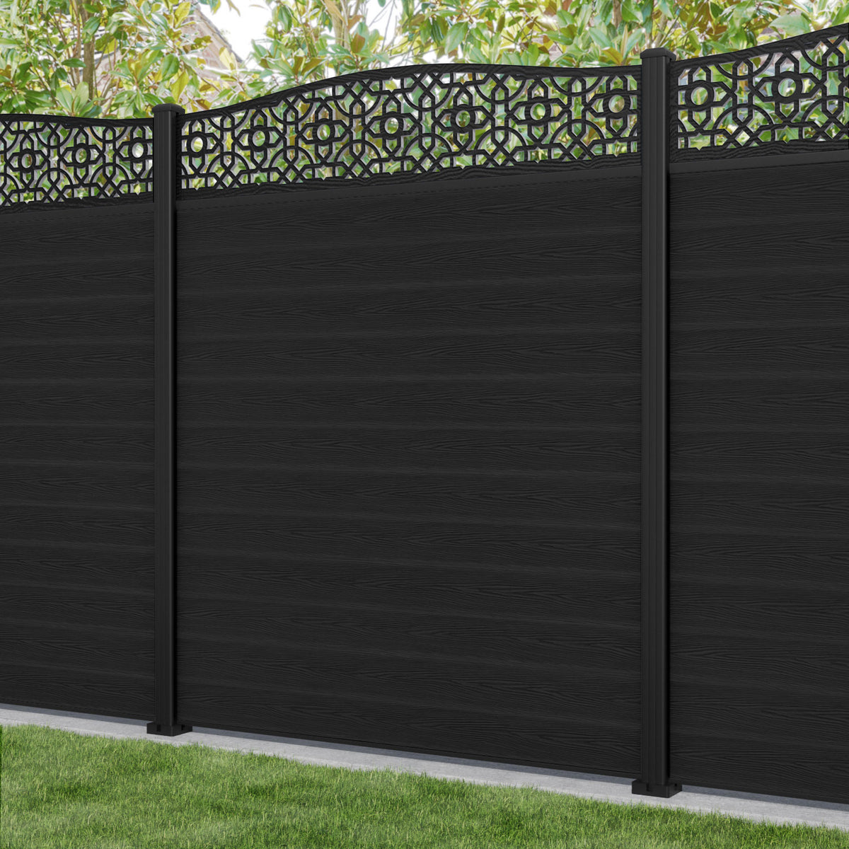 Classic Nabila Curved Top Fence Panel Black - with our aluminium posts