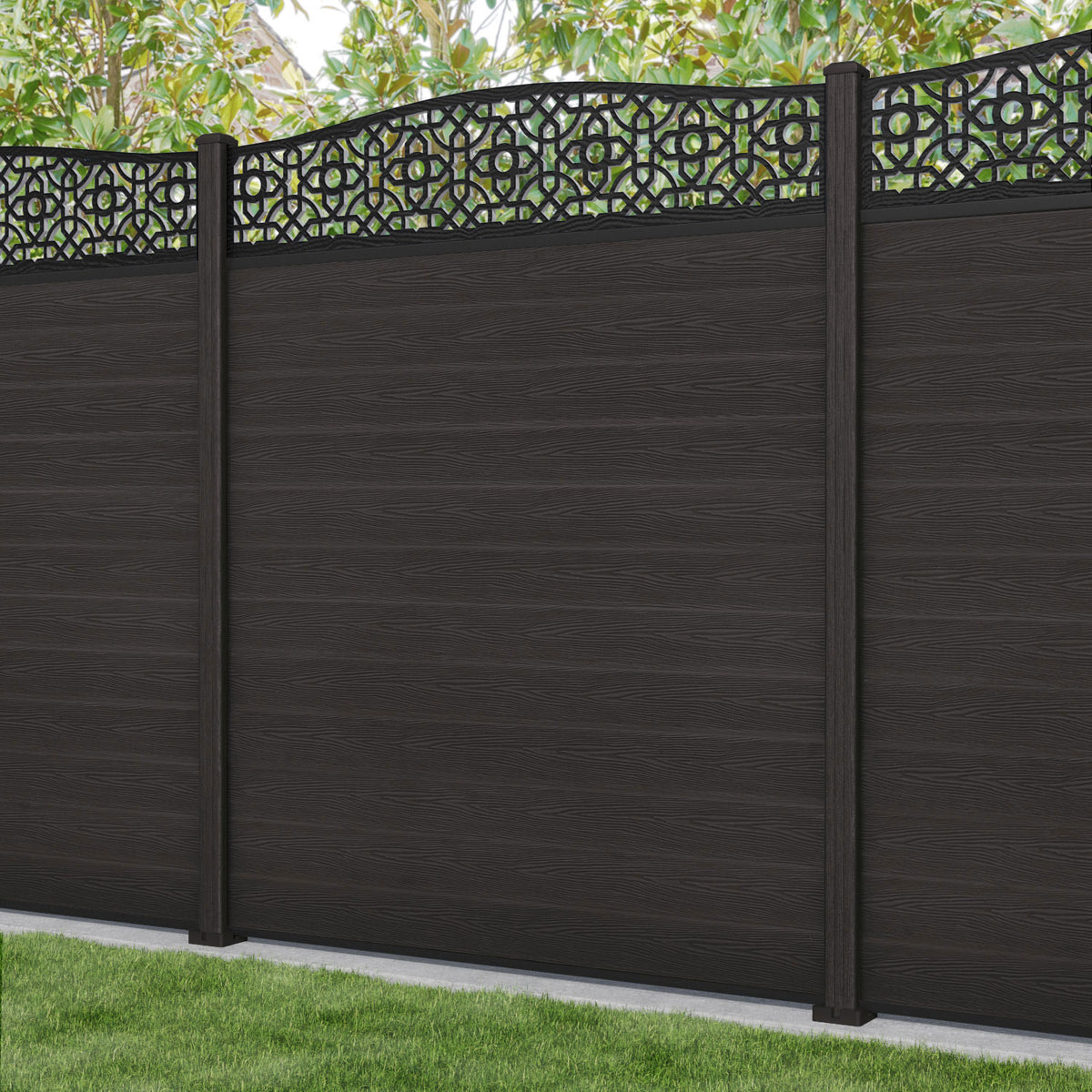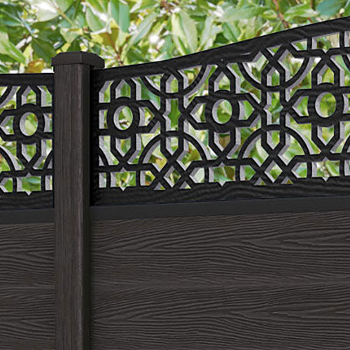 Classic Nabila Curved Top Fence Panel Dark Oak - with our composite posts