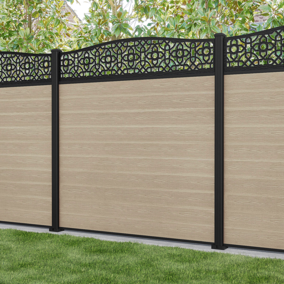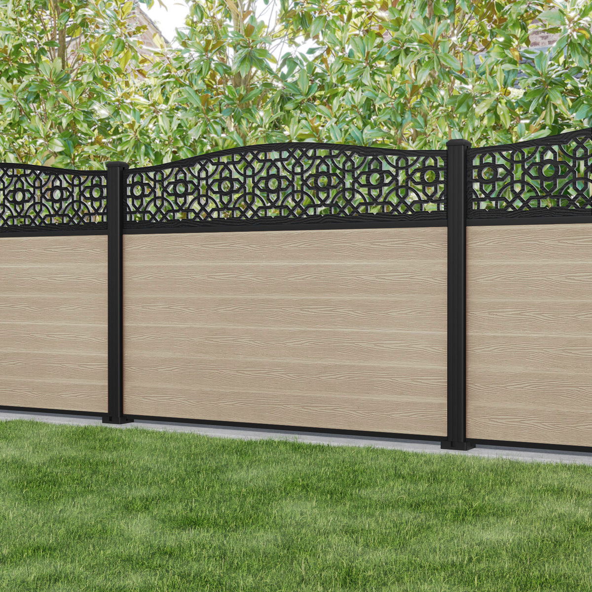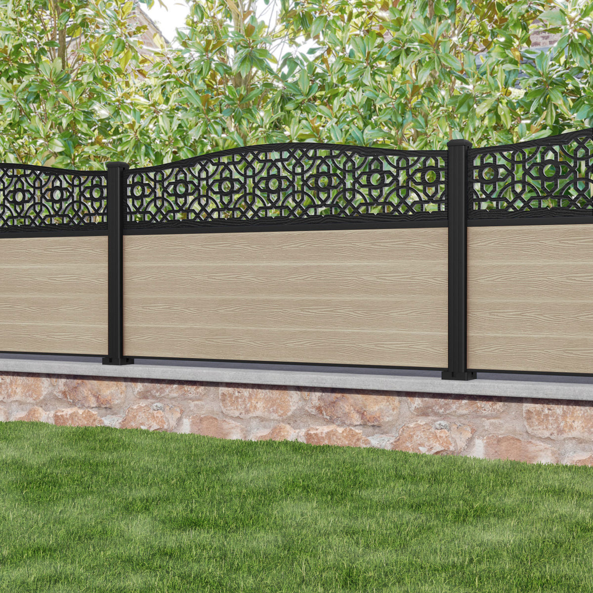 Classic Nabila Curved Top Fence Panel Light Oak - with our aluminium posts