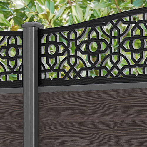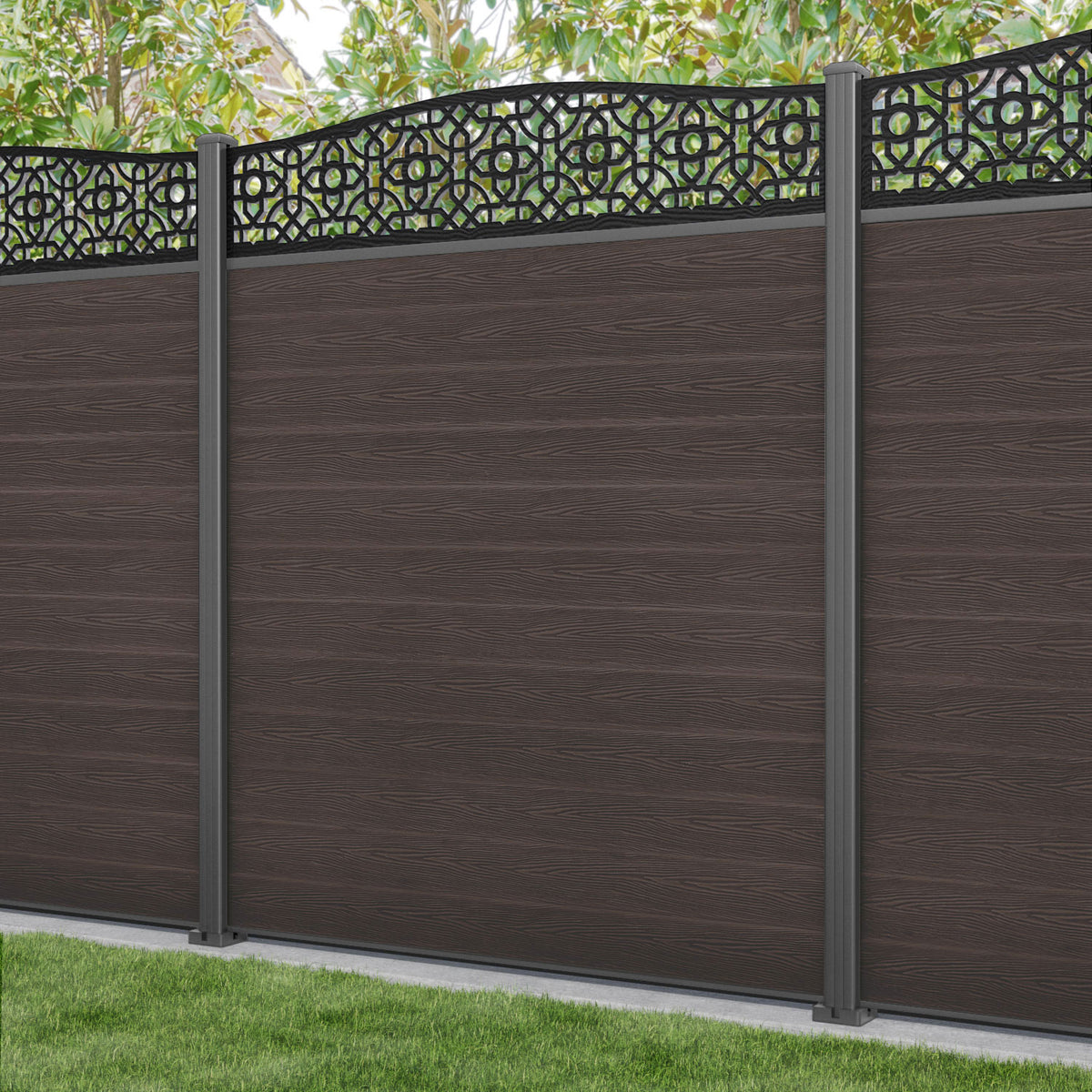 Classic Nabila Curved Top Fence Panel Mid Brown - with our aluminium posts