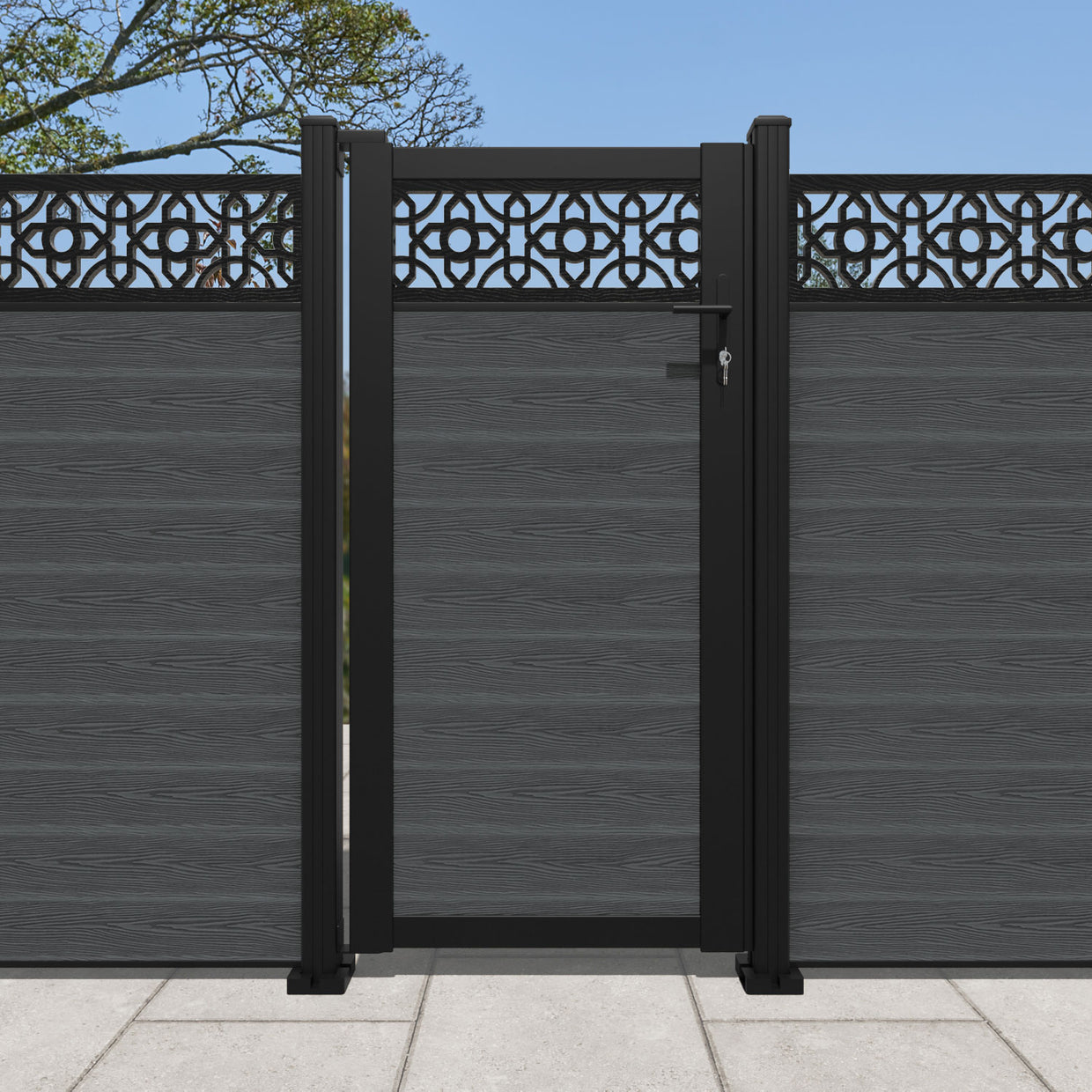 Pair your gate with our eco-friendly composite or aluminium slats for a seamless match to our fencing collections, ensuring a stylish and cohesive look.