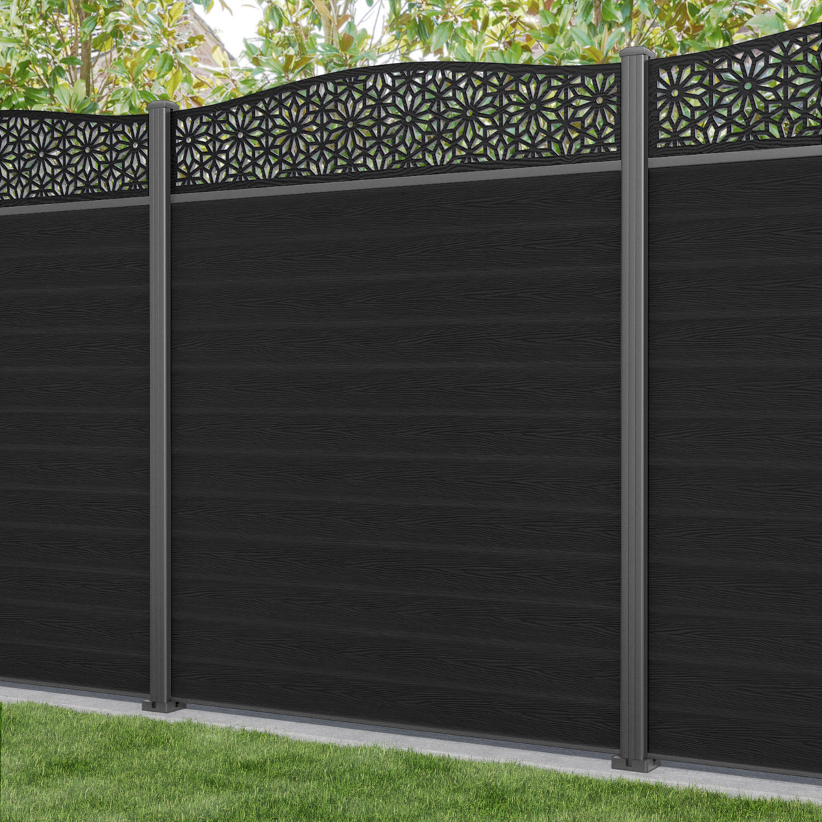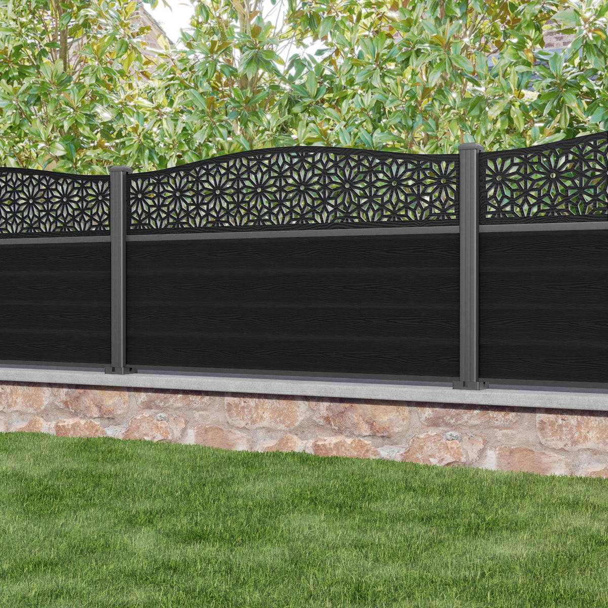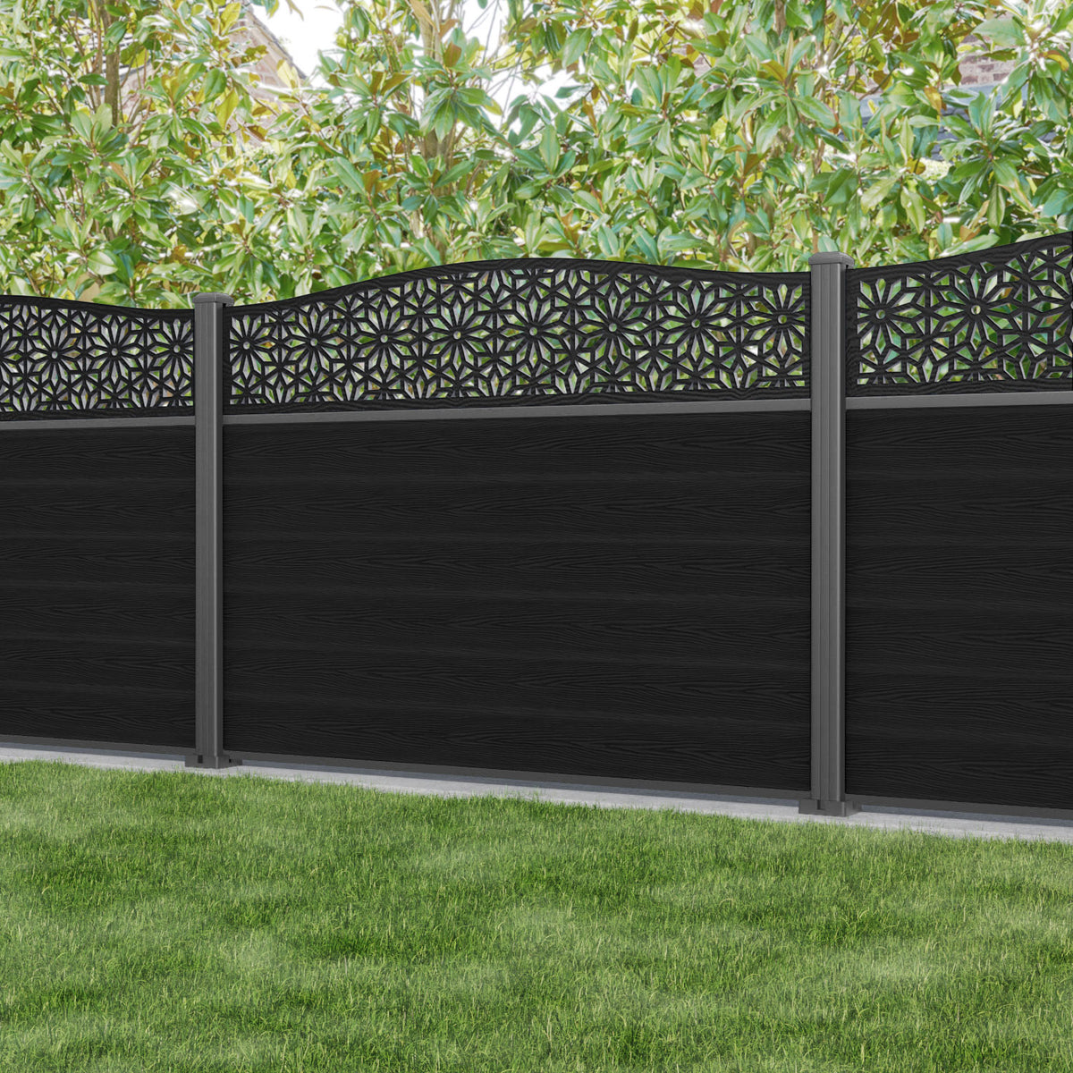 Classic Narwa Curved Top Fence Panel Black - with our aluminium posts
