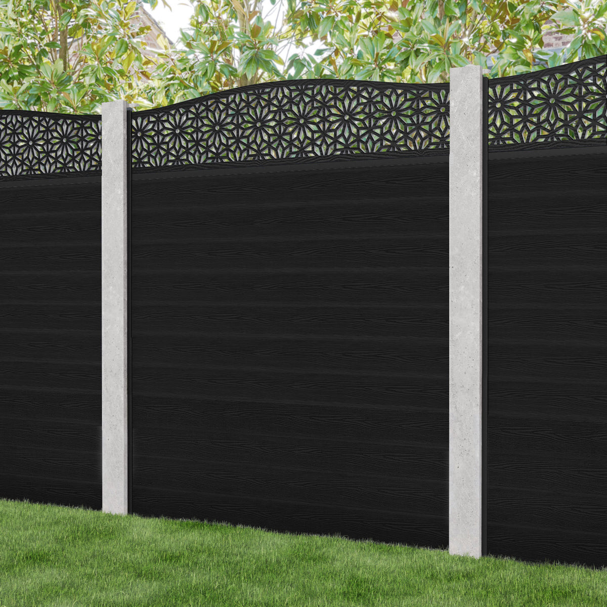 Classic Narwa Curved Top Fence Panel Black - for existing concrete posts