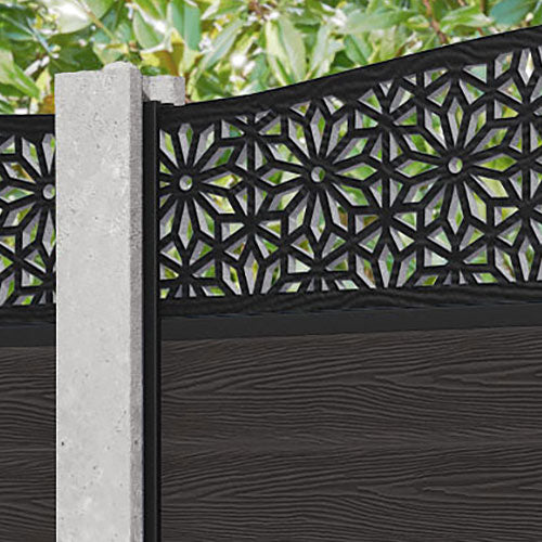 Our Narwa premium composite fence screens, 18mm thick dark oak fence slats and high-grade composite channels are the perfect choice if you have existing concrete posts. Create an elegant, versatile, and eco-friendly fencing solution. Not only is this fencing responsibly sourced, it is also durable, long-lasting and requires no maintenance or painting.