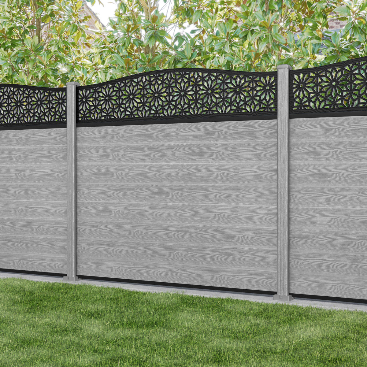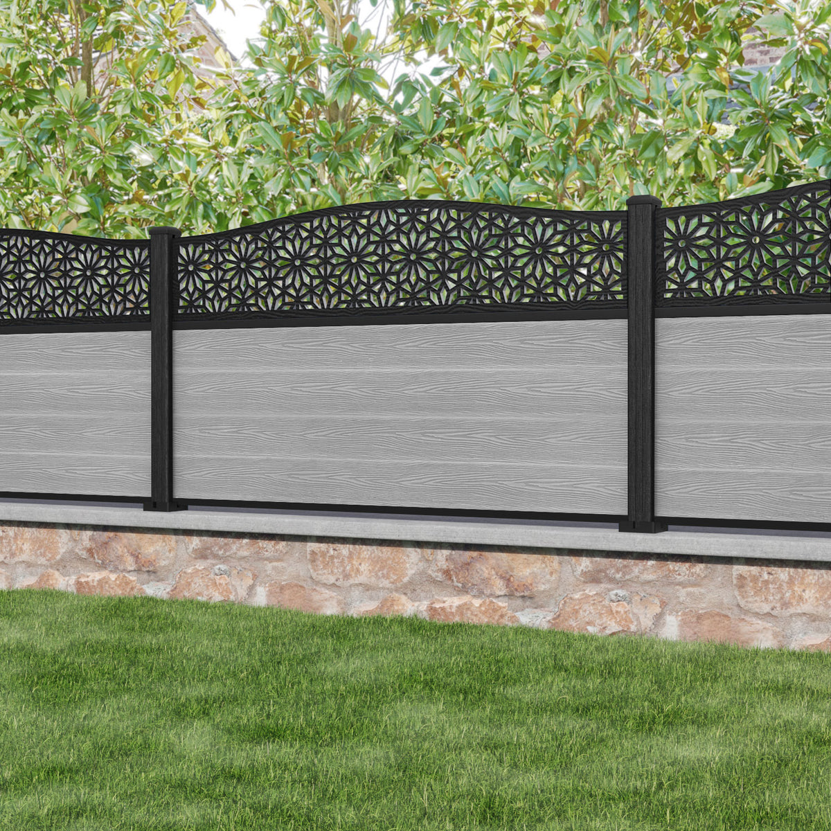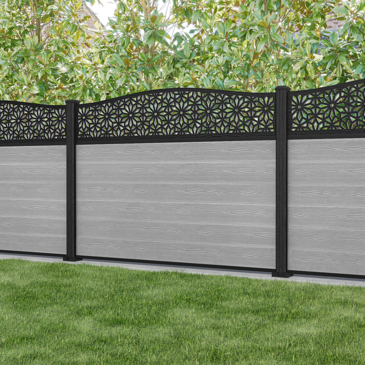 Classic Narwa Curved Top Fence Panel Light Grey - with our composite posts