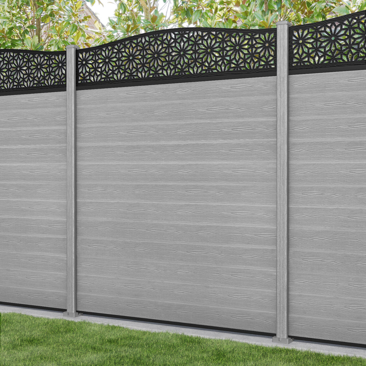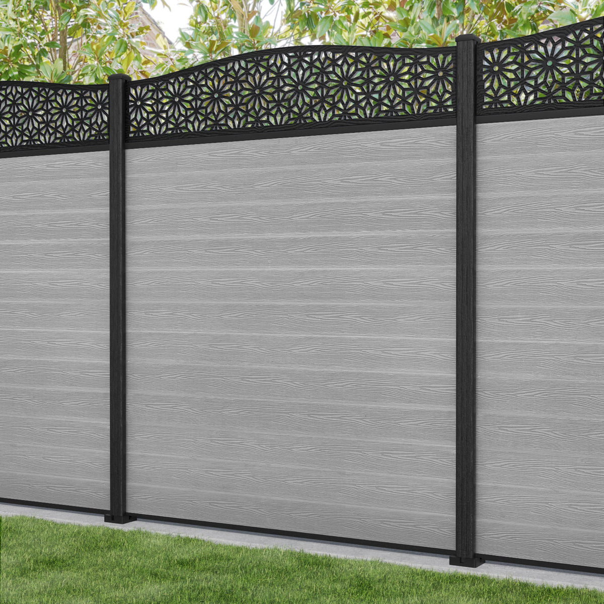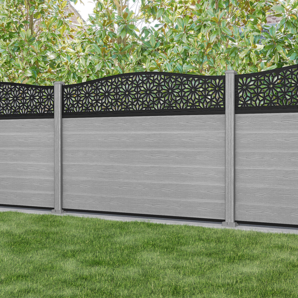 Classic Narwa Curved Top Fence Panel Light Grey - with our composite posts