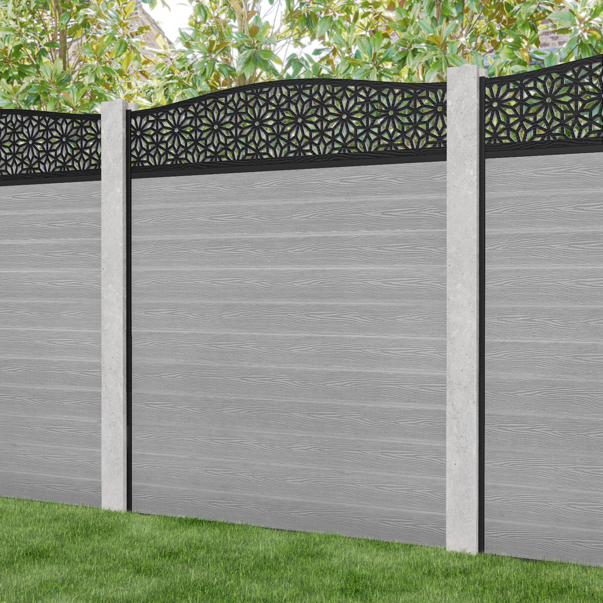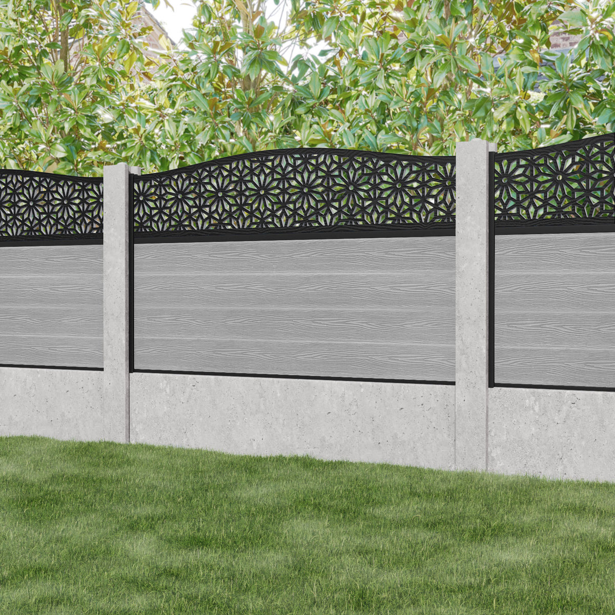 Classic Narwa Curved Top Fence Panel Light Grey - for existing concrete posts