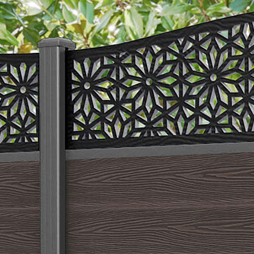 Classic Narwa Curved Top Fence Panel Mid Brown - with our aluminium posts